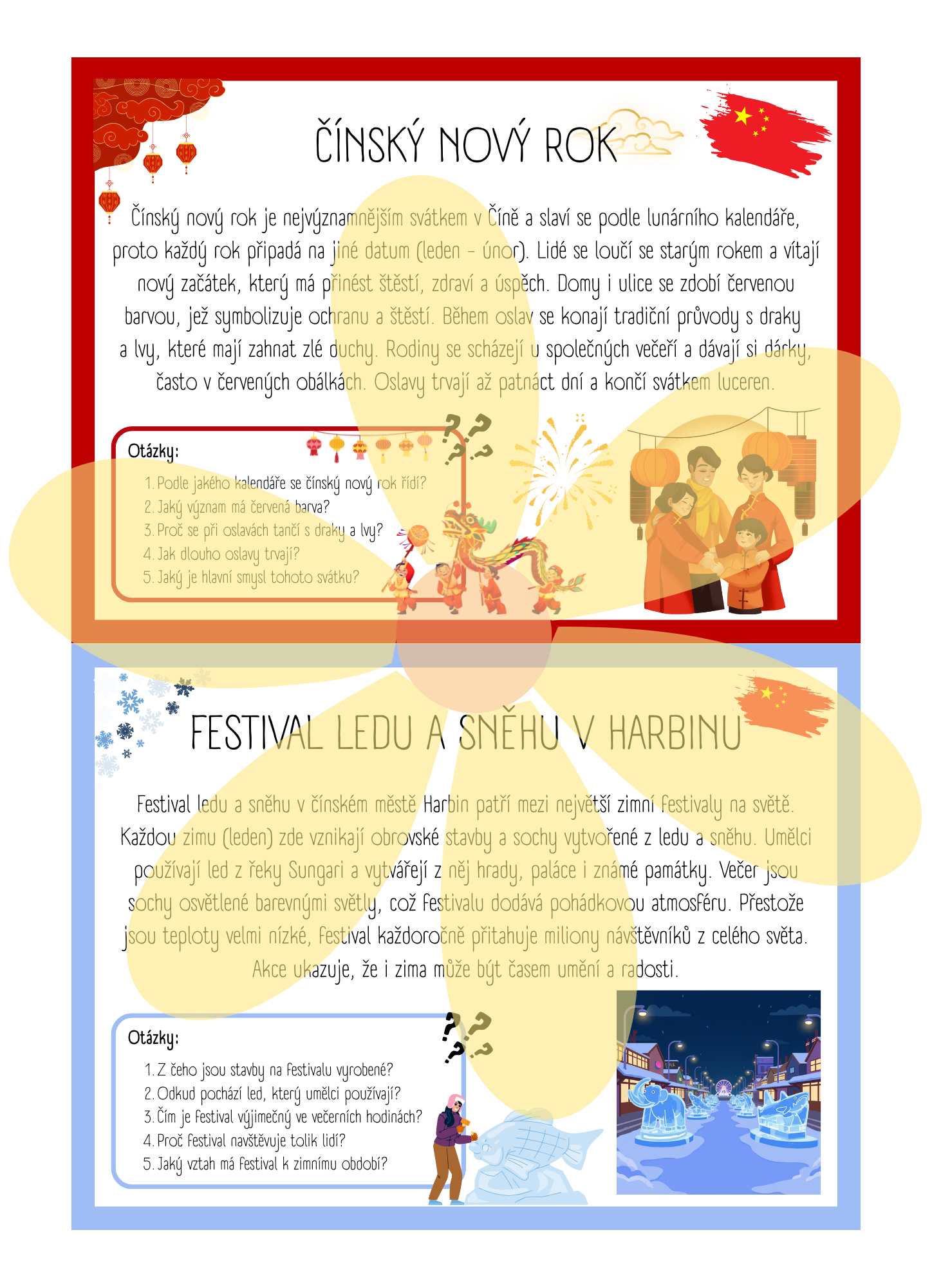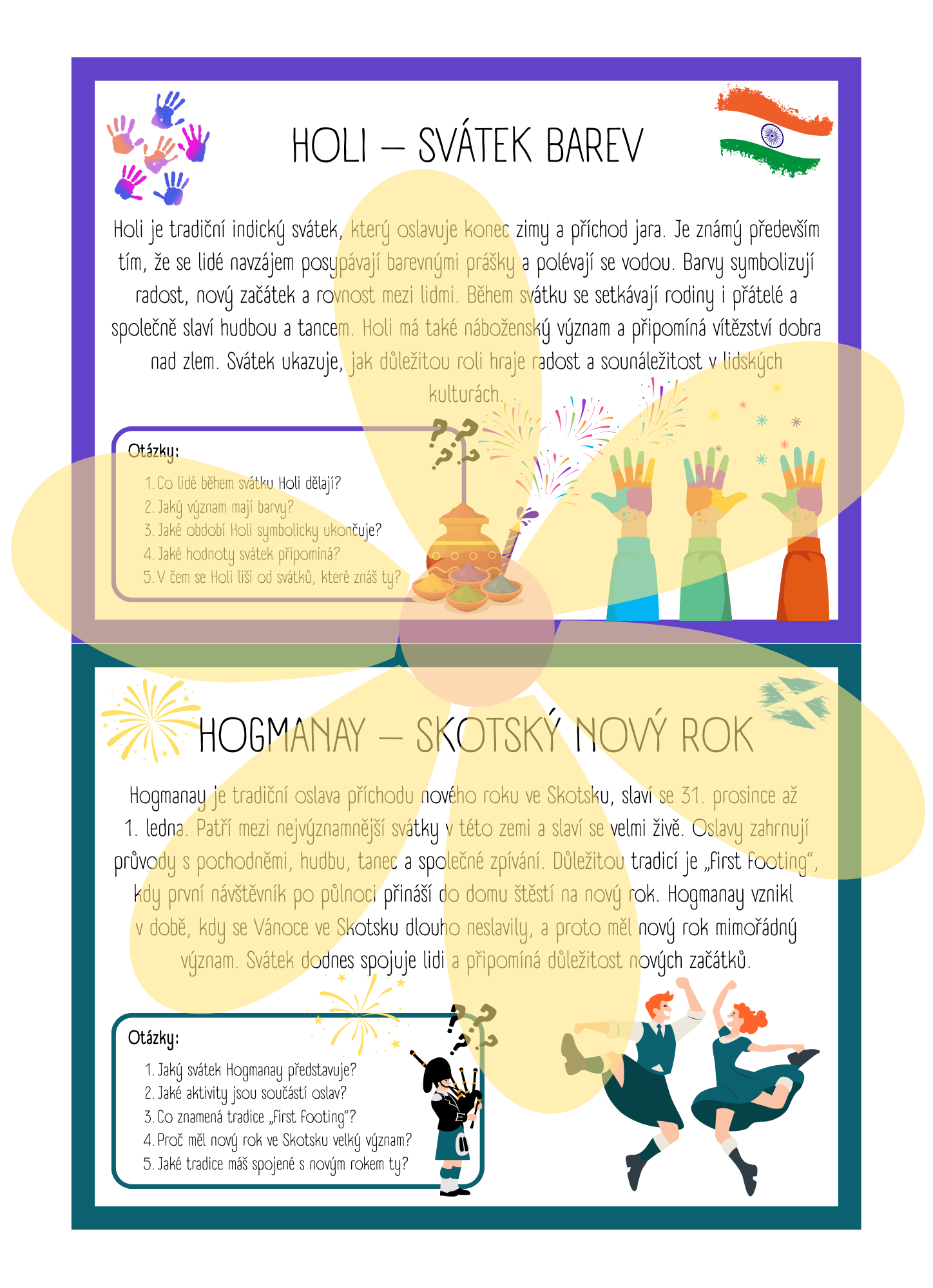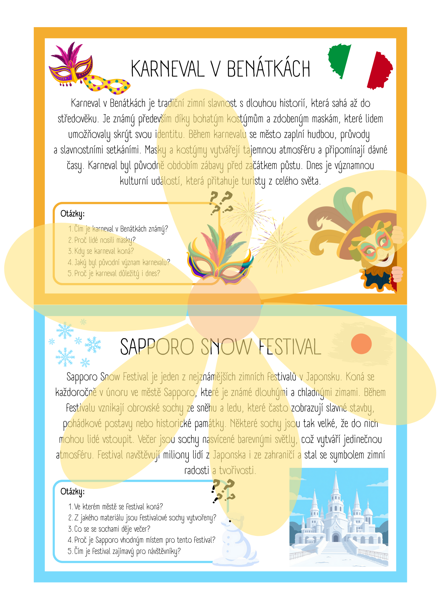 malé úkoly a aktivity, díky nimž si žáci festivaly vyzkouší, lépe zapamatují a procvičí porozumění textu.