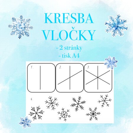 Tento soubor obsahuje 2 stránky s kresbami vloček. Děti se díky jednoduchým krokům učí kreslit sněhové vločky.