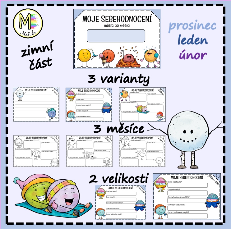 Materiál „Moje sebehodnocení – měsíc po měsíci – zimní část“ představuje ucelenou sadu pracovních listů, které podporují průběžnou sebereflexi, sebehodnocení a budování zdravého sebevědomí u žáků 2.–5. ročníku základní školy. Materiál je koncipován tak, aby dětem pomáhal vnímat vlastní pokrok, uvědomovat si silné stránky, pojmenovávat překážky a přemýšlet o tom, jak mohou svou práci i chování dál rozvíjet.