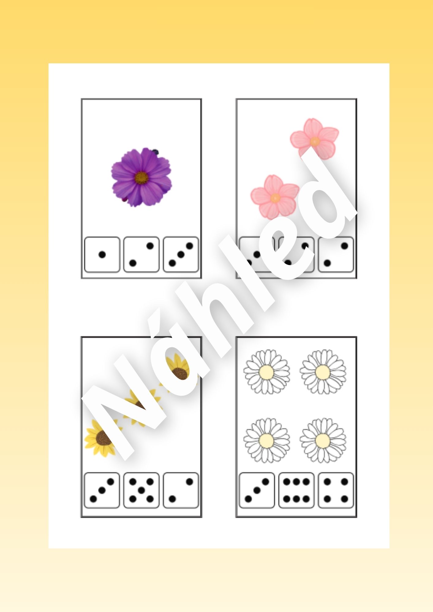 - Kytičky s listy (str. 25-31) - vystřihneme listy a poté je podle hodu kostkou přikládají ke kytičkám