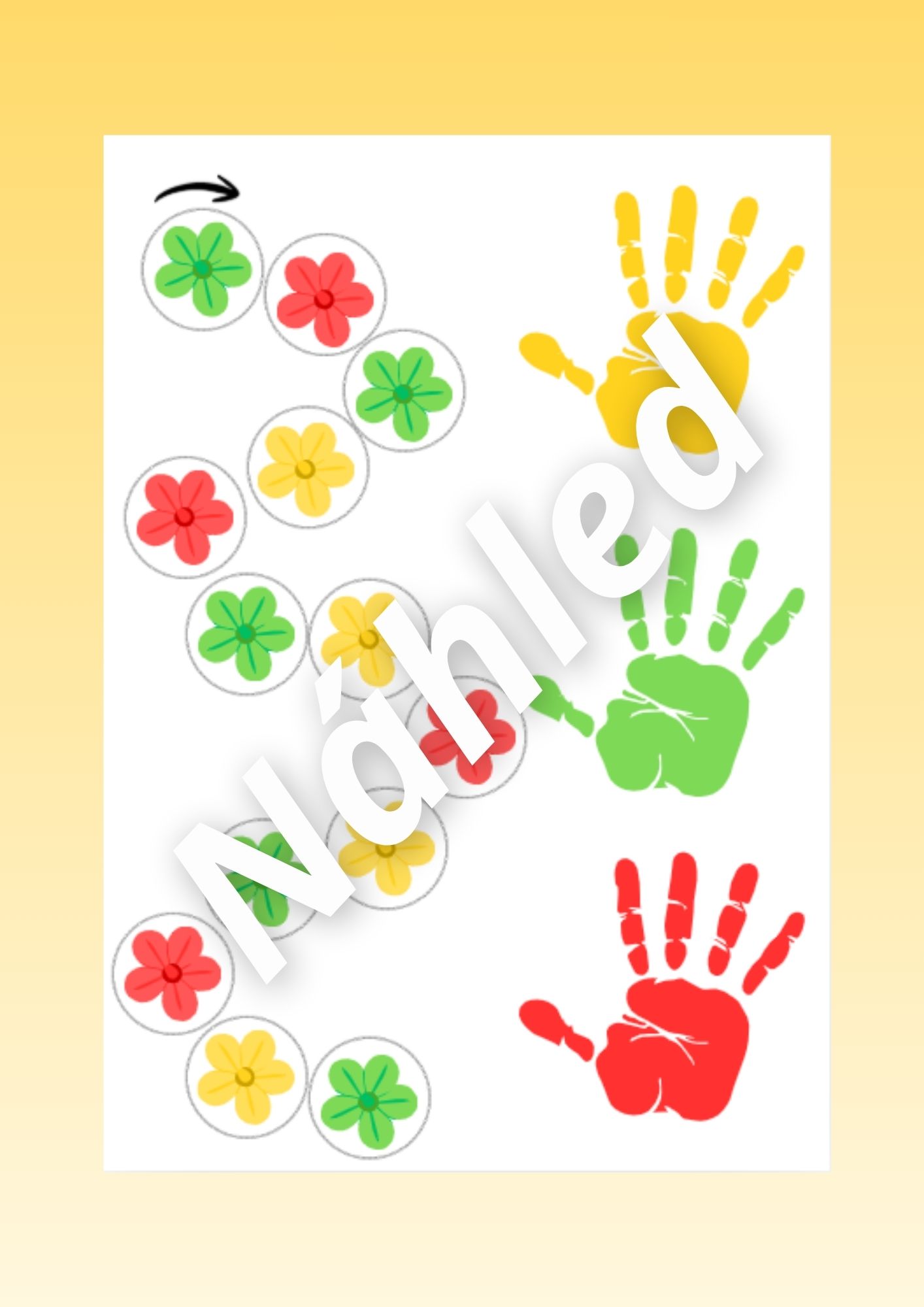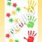 - Propojení hemisfér (str. 55) - dítě jedním prstem ukazuje na kytičky a druhou rukou podle barvy kytičky přikládá dlaň na odpovídající barevný otisk