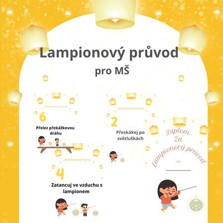 Lampionový průvod 🌙 plný zábavy! Čeká vás 6 hravých úkolů – děti budou hledat světlušky 🐞, objevovat malé lampiony 🏮 a tvořit vlastní papírový oheň 🔥. Každý splněný úkol si označí do kartičky na razítka ✅. Na konci cesty je čekají krásné diplomy pro kluky i holky 🎉. Vše stačí vytisknout, zalaminovat a rozmístit podél trasy. Perfektní aktivita pro podzimní večery! 🌜✨