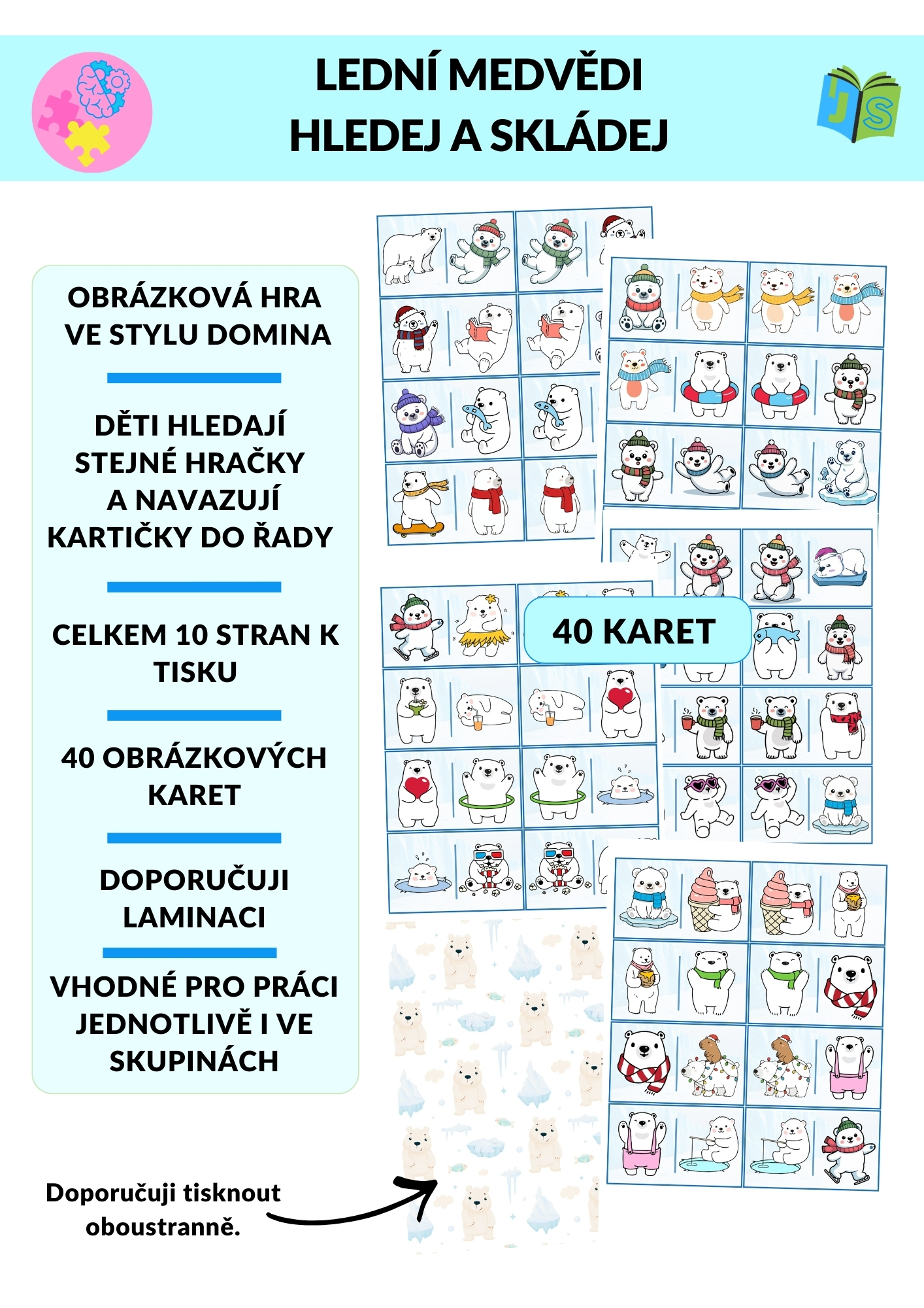 • 40 obrázkových karet s ledními medvědy