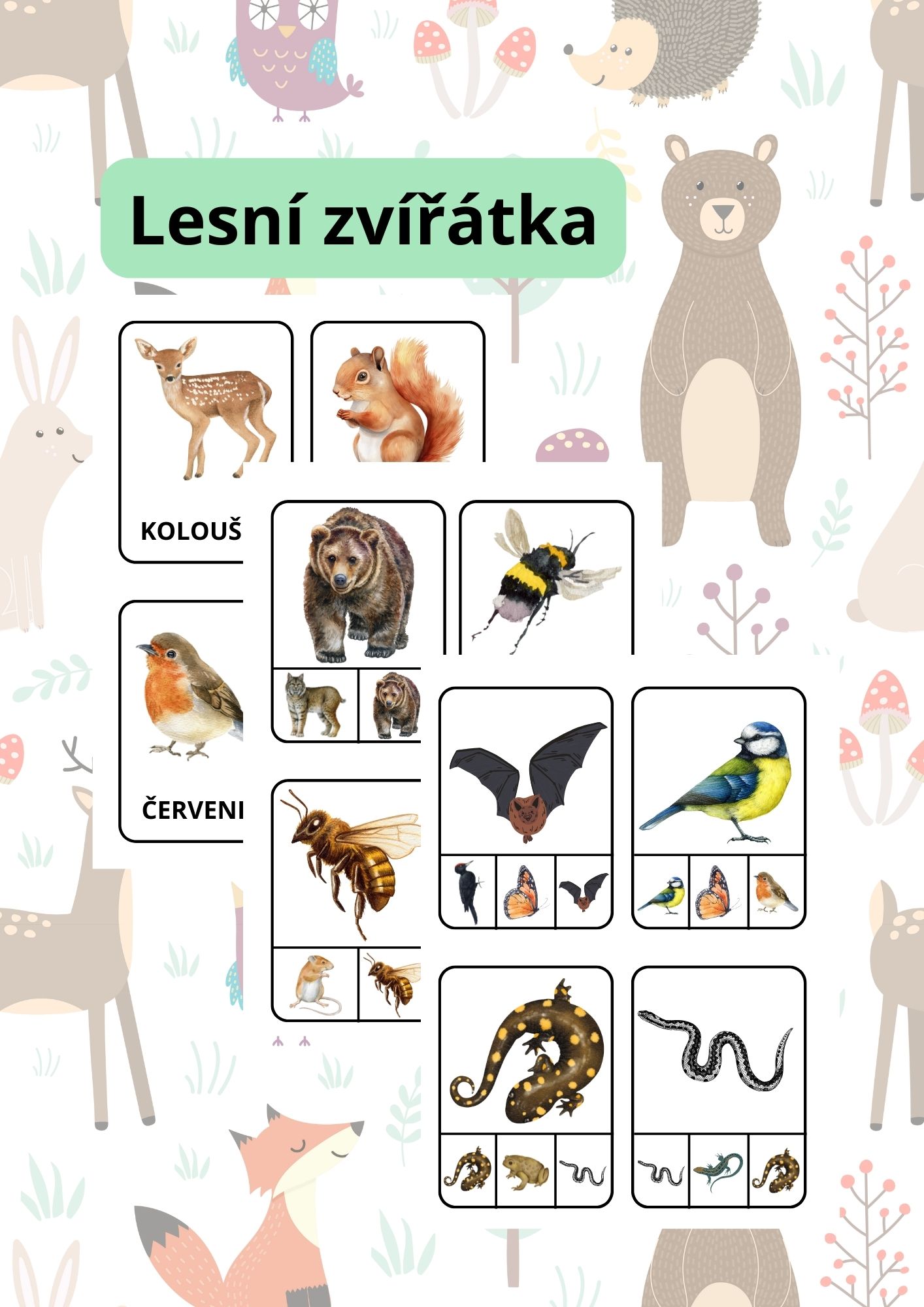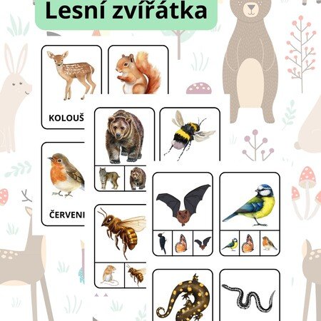 Lesní zvířátka - demonstrační karty, kolíčkování