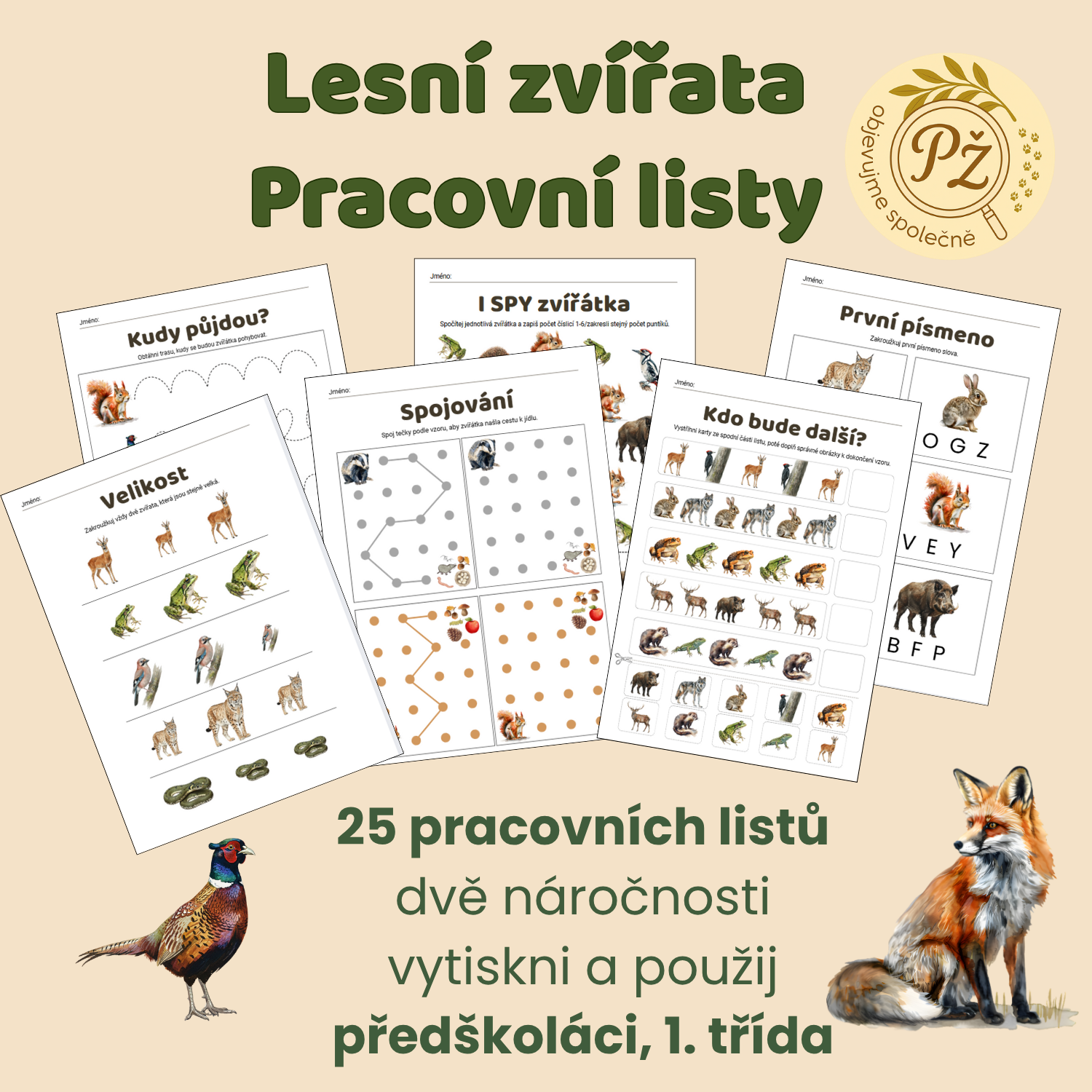 Nabízený materiál obsahuje 25 pracovních listů určených pro předškoláky a žáky první třídy. Tematicky se zaměřuje na lesní zvířata a rozvíjí různé dovednosti dětí. Snažila jsem se u většiny úkolů tvořit dvě varianty a rozlišit obtížnost. Pracovní listy můžeme využít při tematických blocích, projektových dnech, jako volnou nabídku aktivit pro děti.