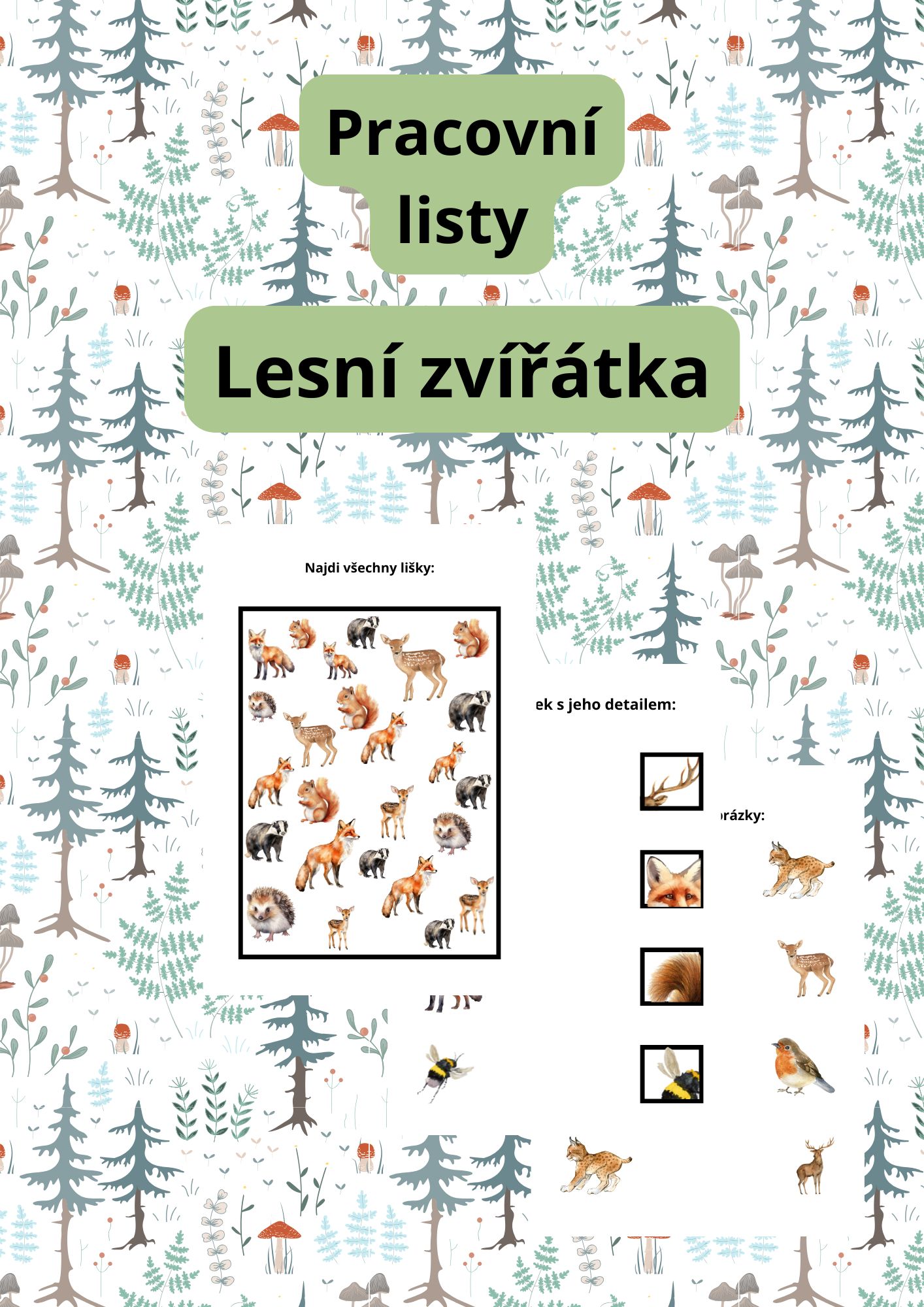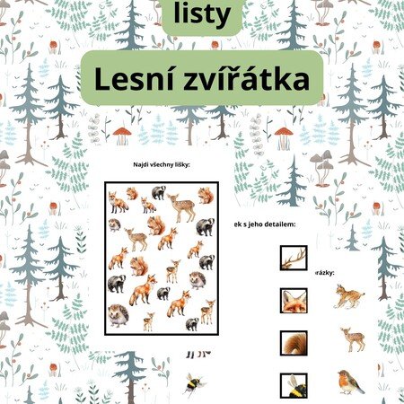 Lesní zvířátka - pracovní listy, různá obtížnost