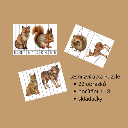 Soubor obsahuje 22 obrázků, které lze rozstříhat a následně využít jako puzzle. Jedna varianta je skládání pomocí čísel a druhá podle tvarů.