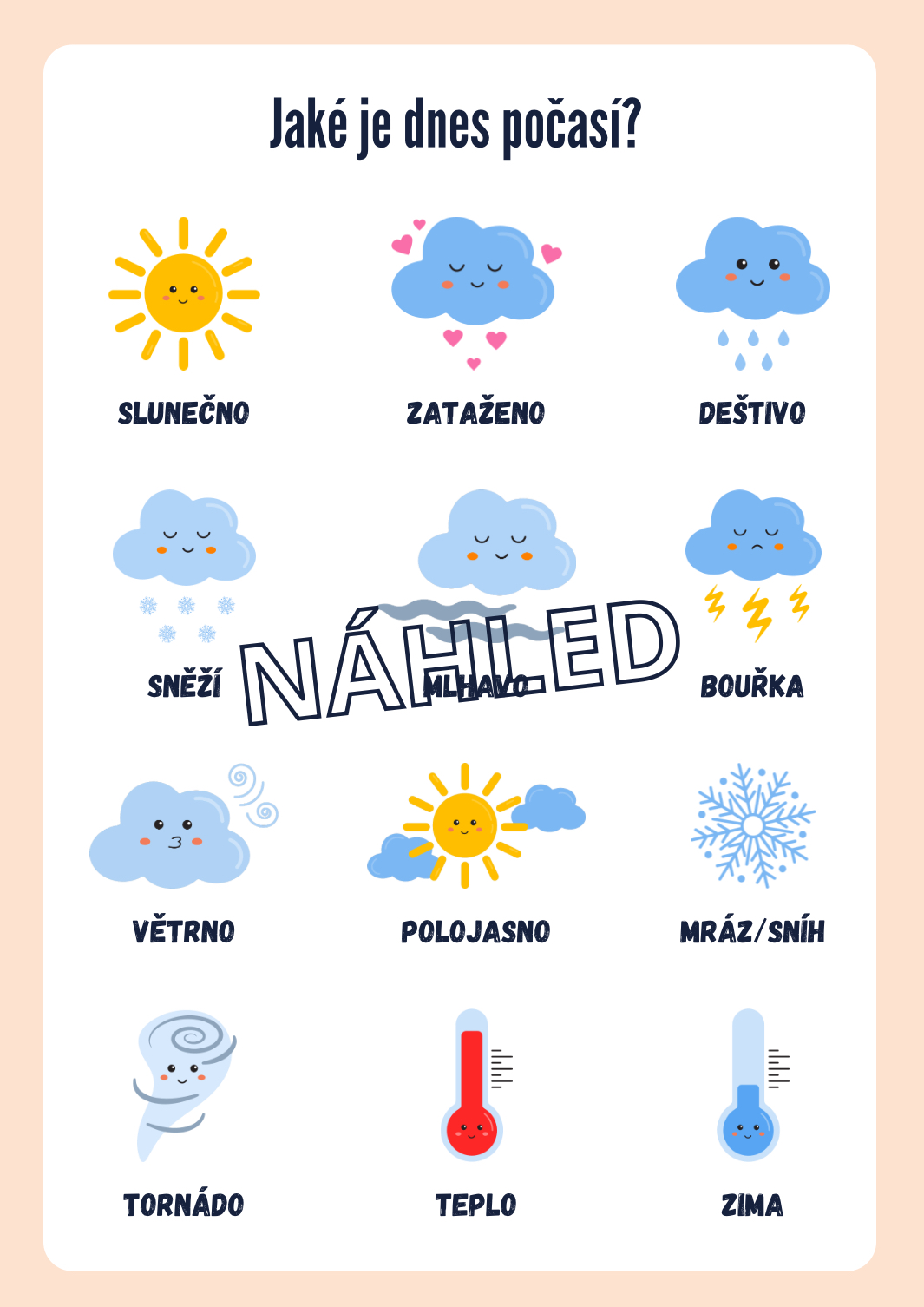 - Ranní kruhy o počasí, pozorování z okna, práce s piktogramy