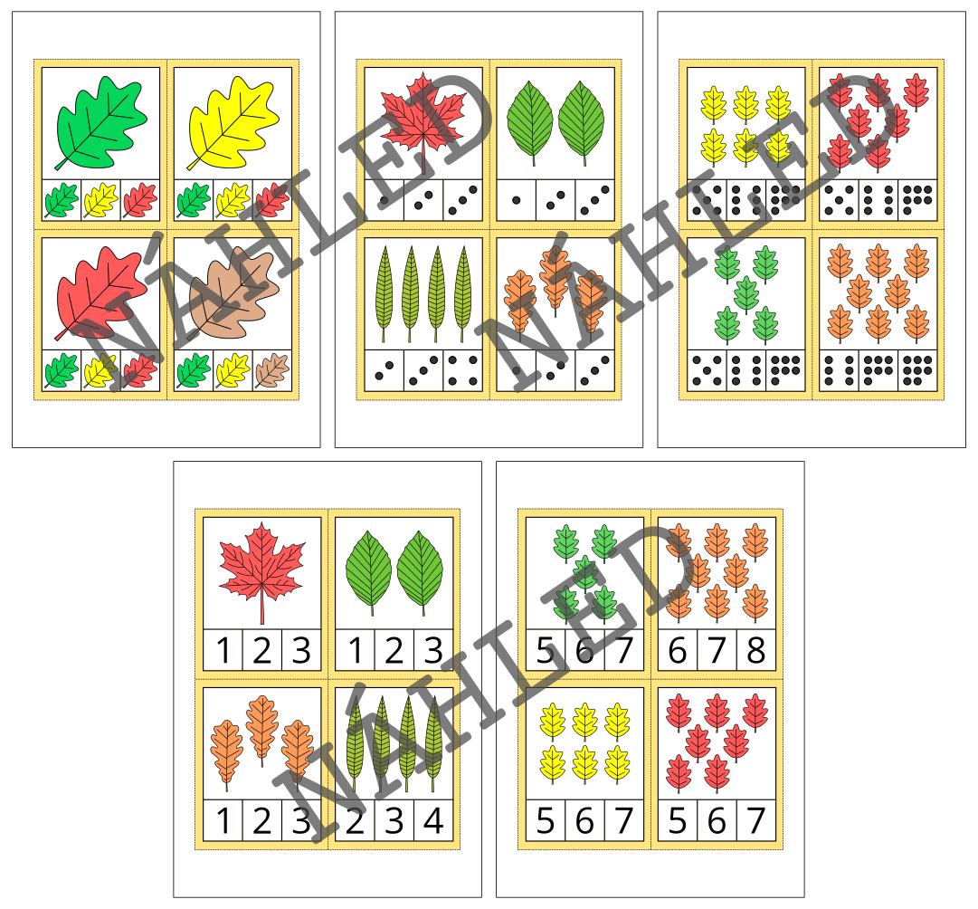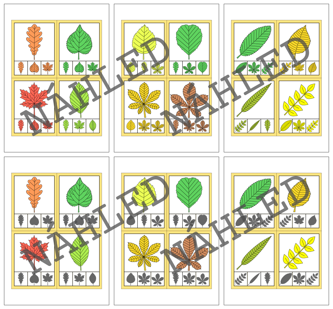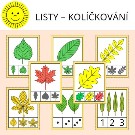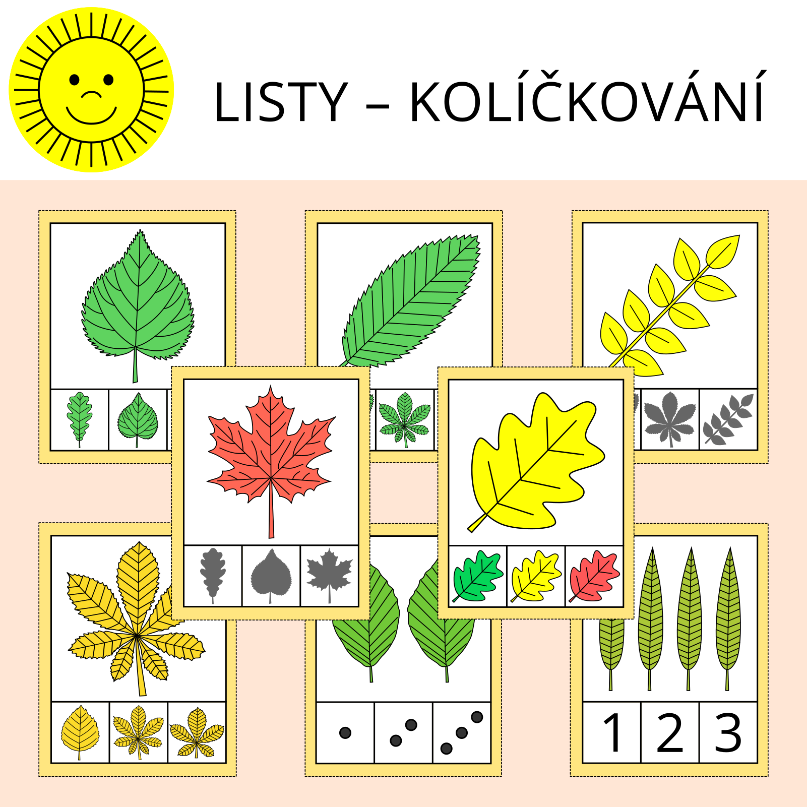 Materiál na téma listy slouží k procvičení zrakového vnímání a počítání. Je vhodný i k tématům stromy, Den stromů a podzim. Obsahuje 44 kartiček.