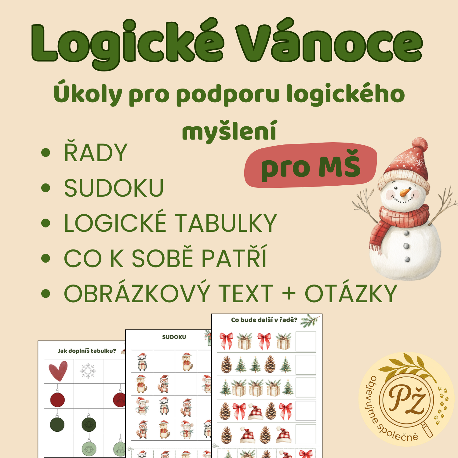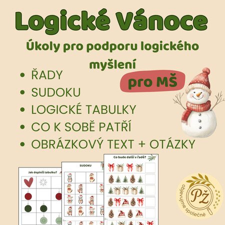 Dobrý den, v souboru Logické Vánoce najdete aktivity pro podporu logického myšlení u dětí v MŠ, nejčastěji pro předškoláky. Využít mohou i učitelé prvních tříd.