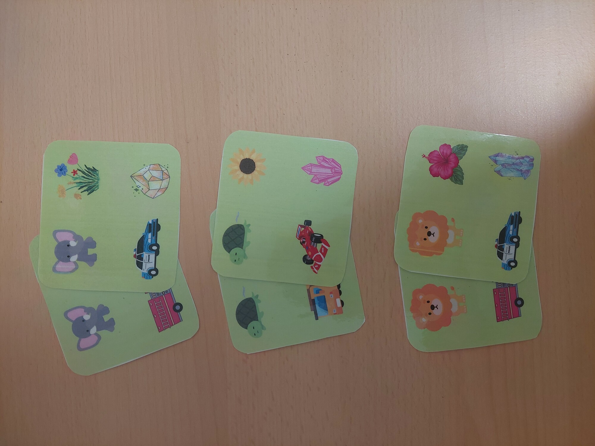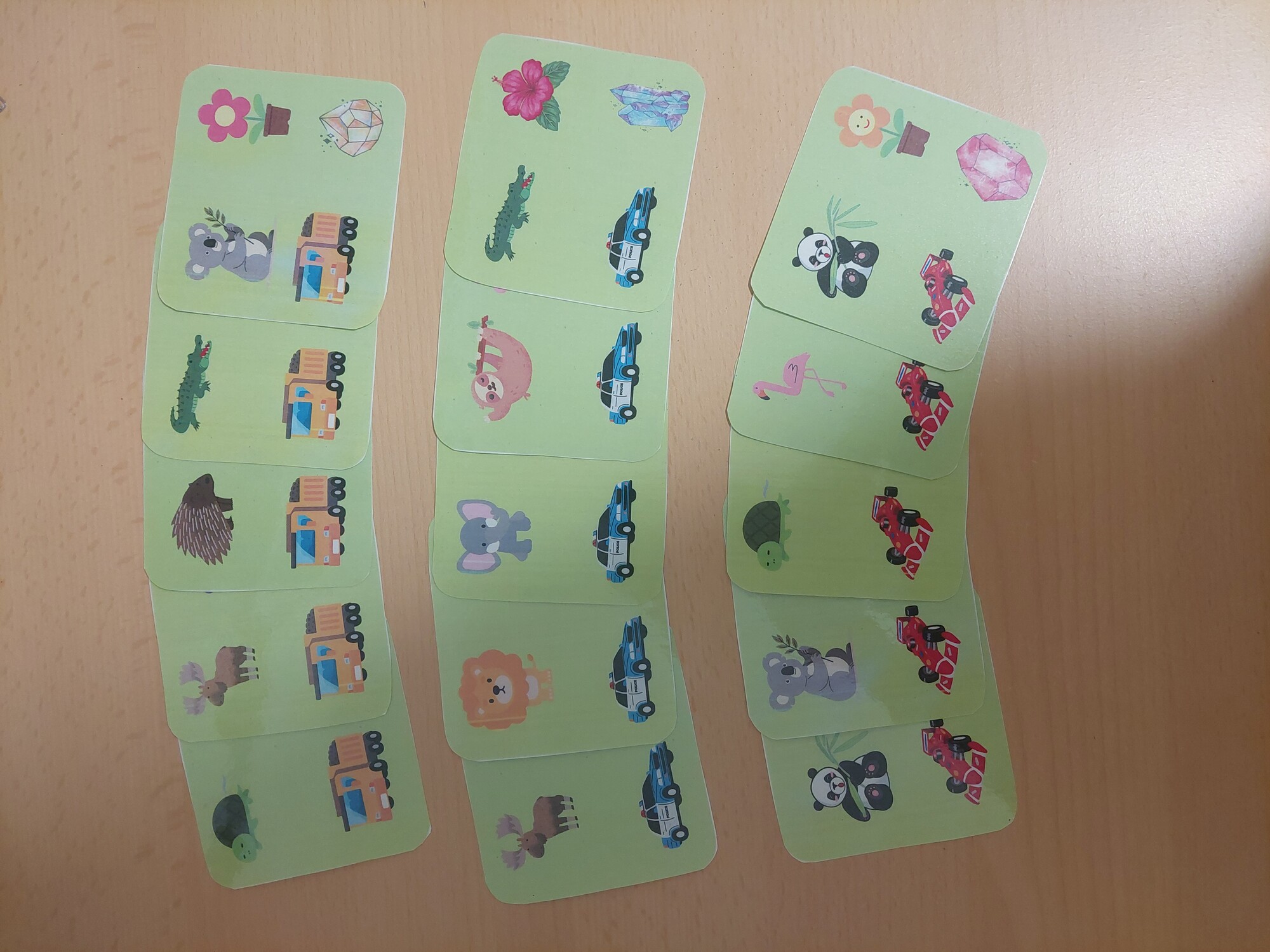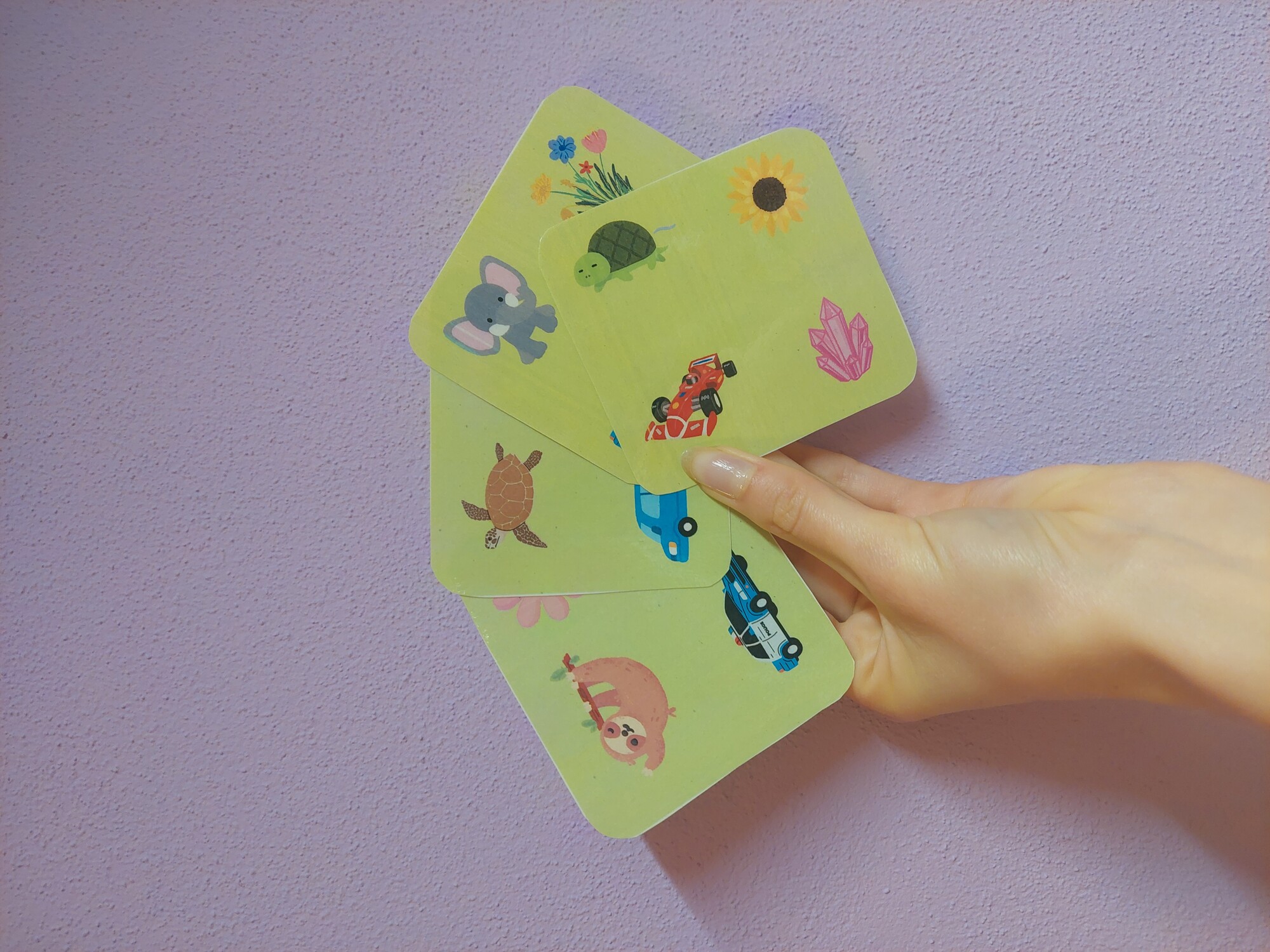 Pexeso nabízí dvě varianty s 12 páry kartiček. První varianta je určena k tomu, aby děti zábavnou formou zjistily, jak