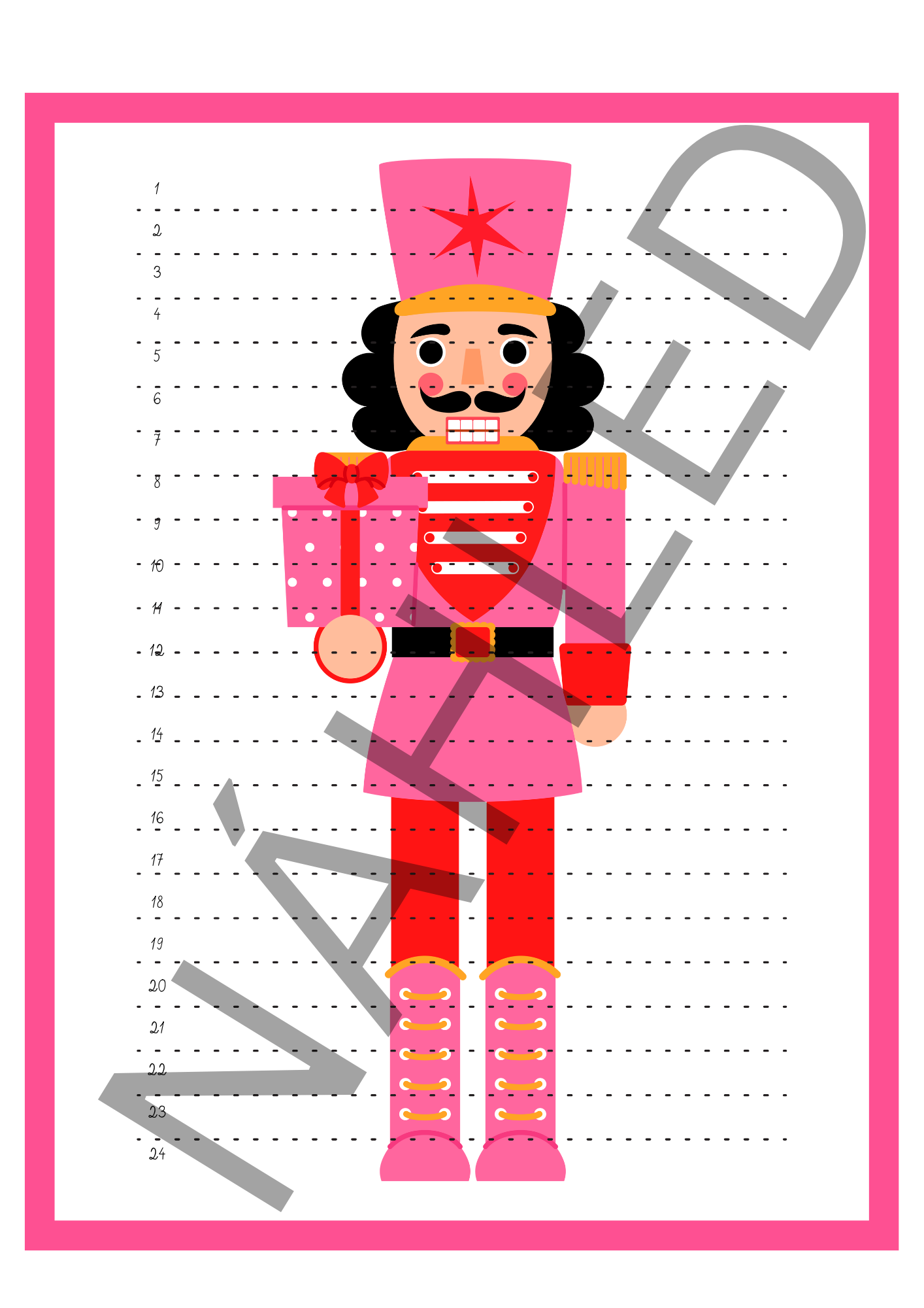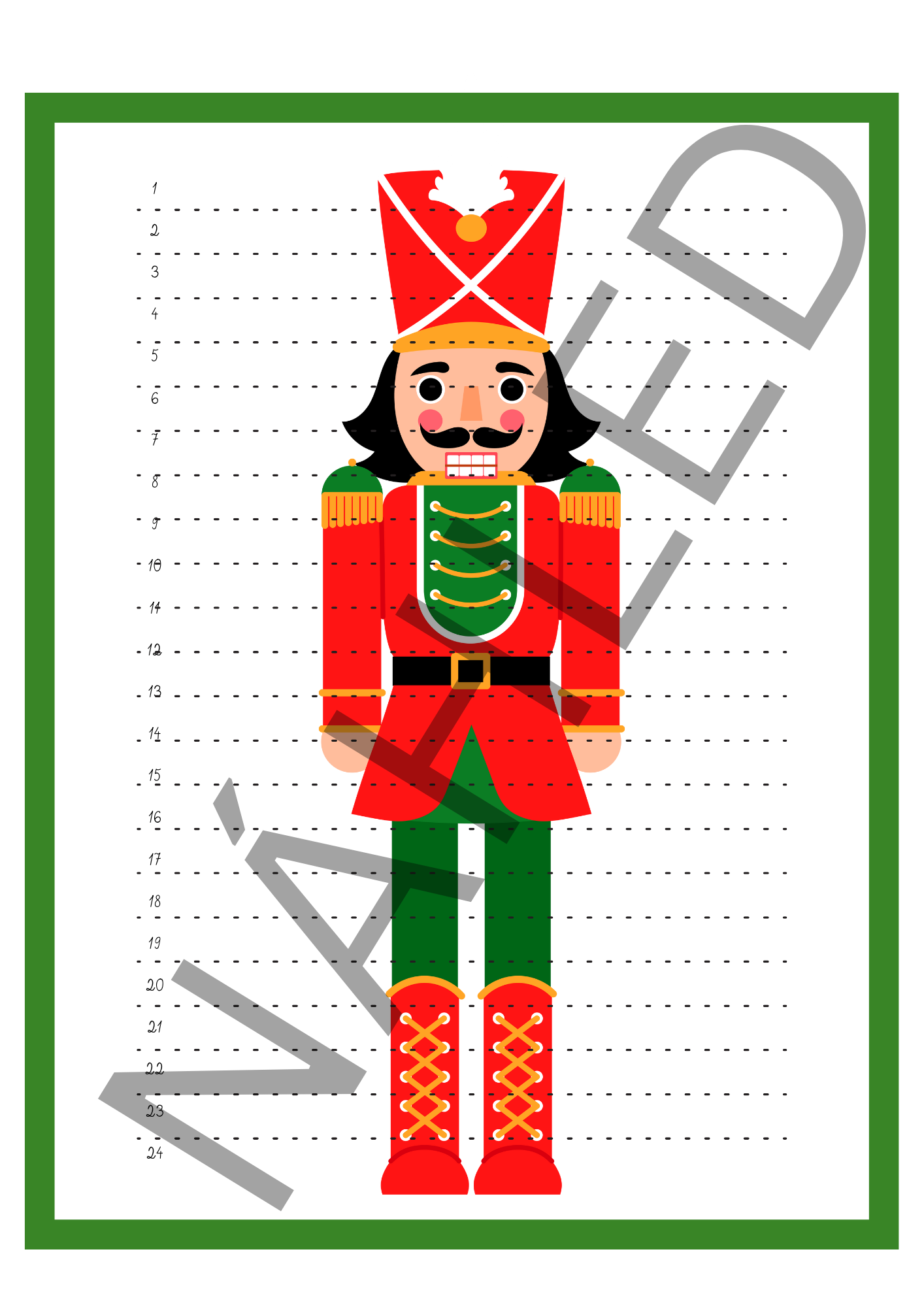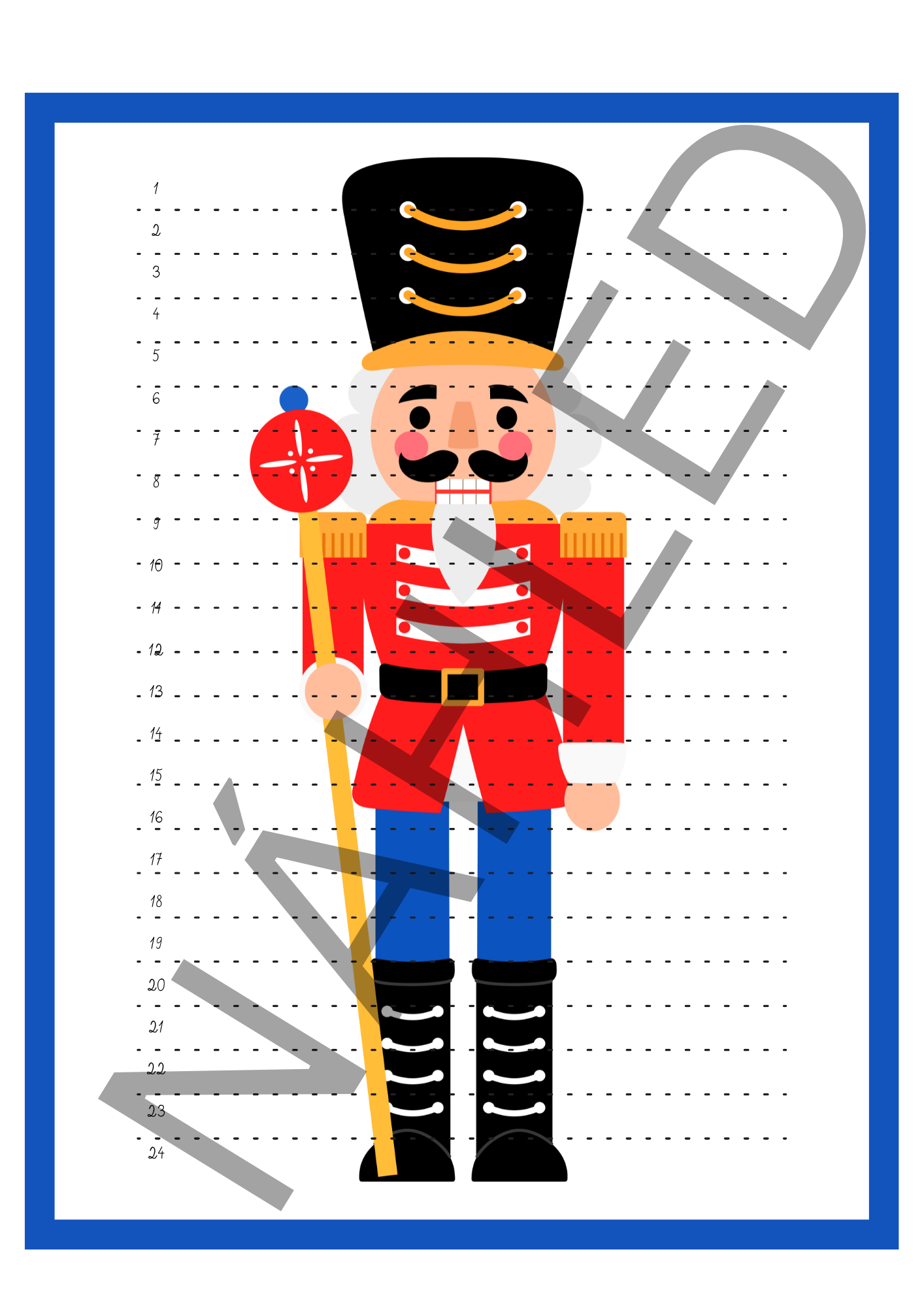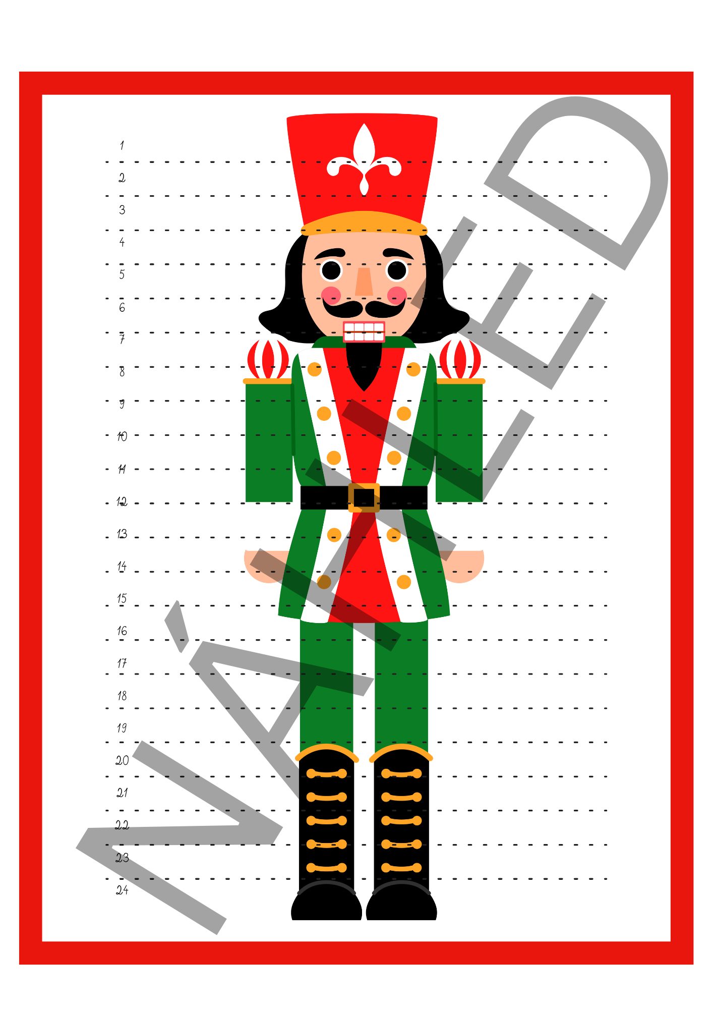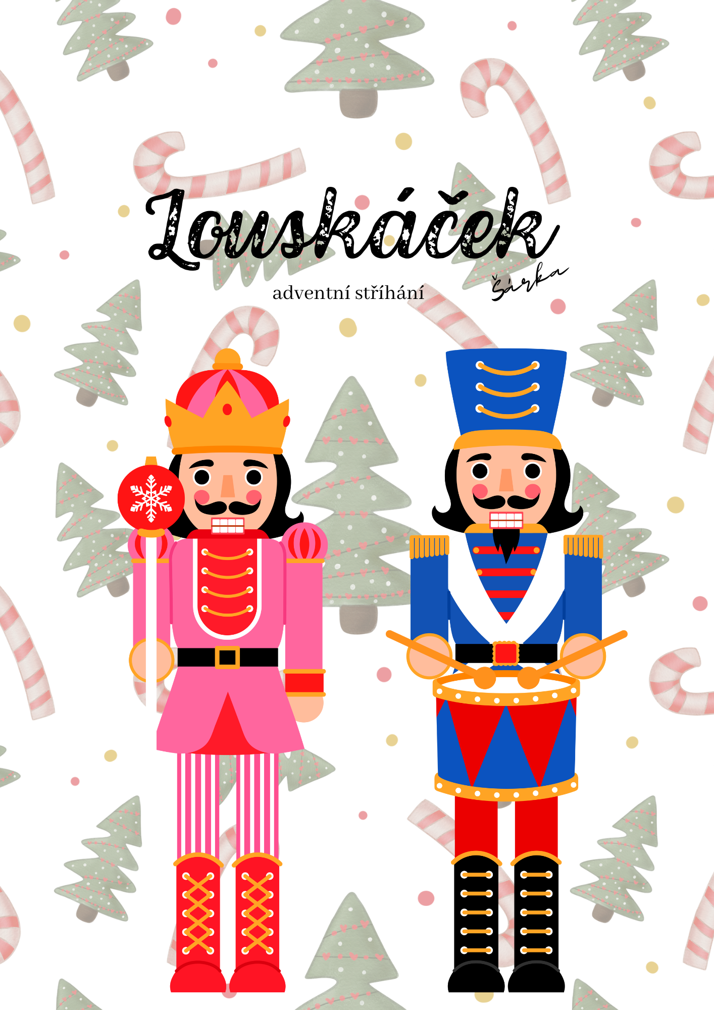 28 různých obrázků barevných louskáčků, lze využít jako stříhací adventní kalendář