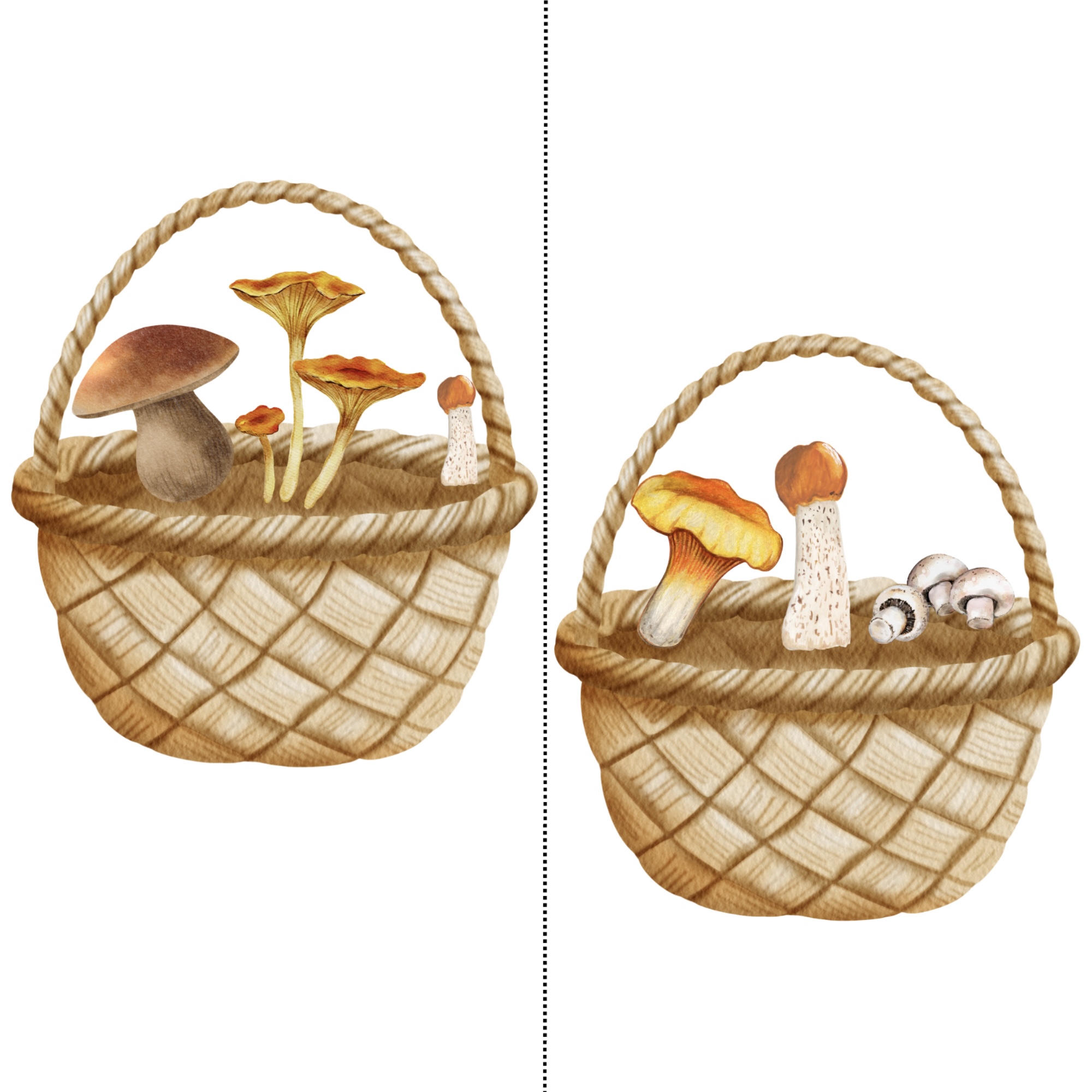 - Děti porovnávají předlohu s obrázky hub a skládají je do připraveného prutěného košíku.