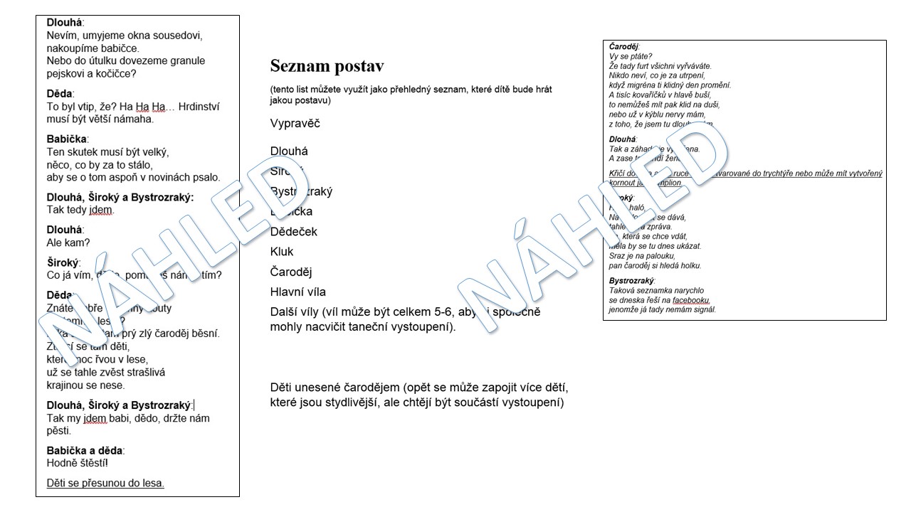 Veršovaný text na motivy pohádky Dlouhý, Široký a Bystrozraký. Obsah souboru:Informace ke scénářiText k naučeníRady a tipyDramatizace - krok za krokemSeznam postav