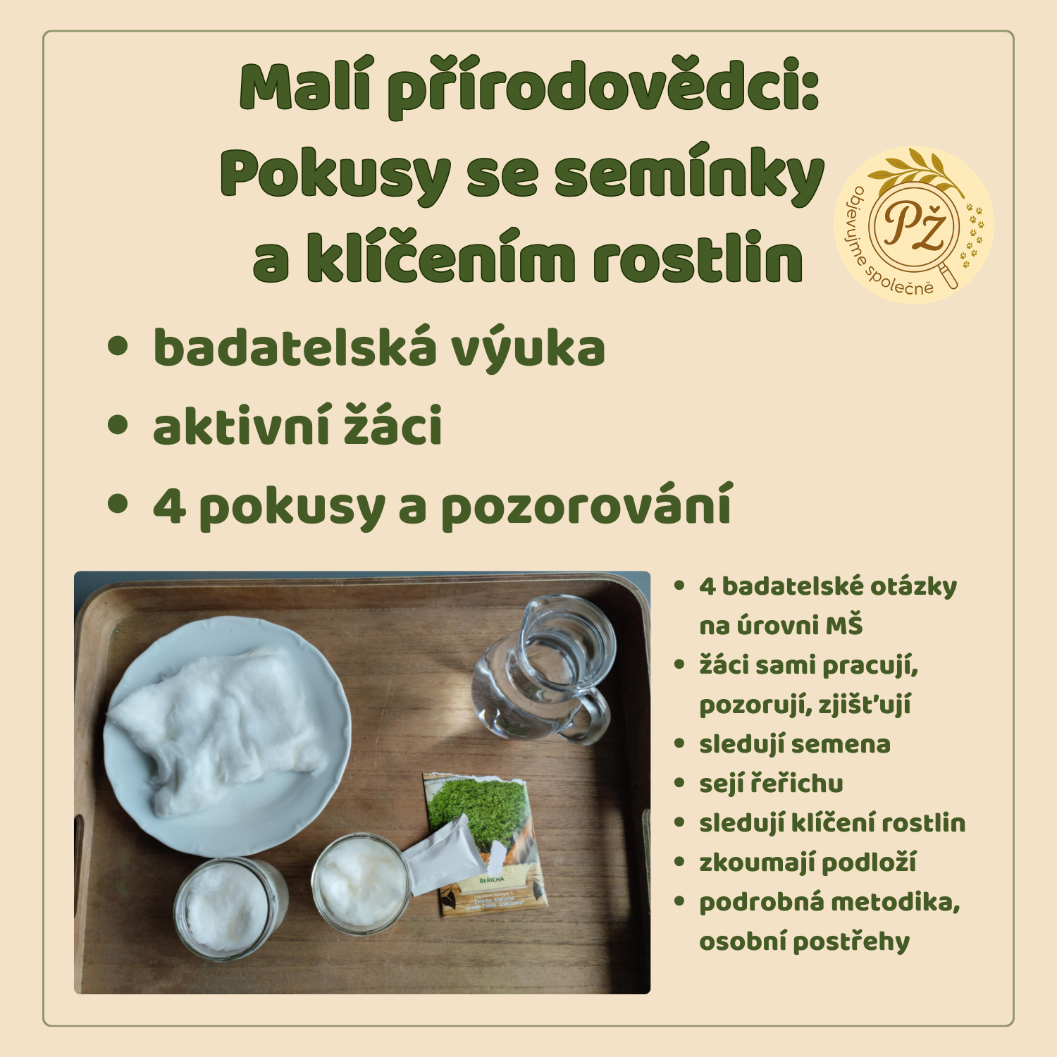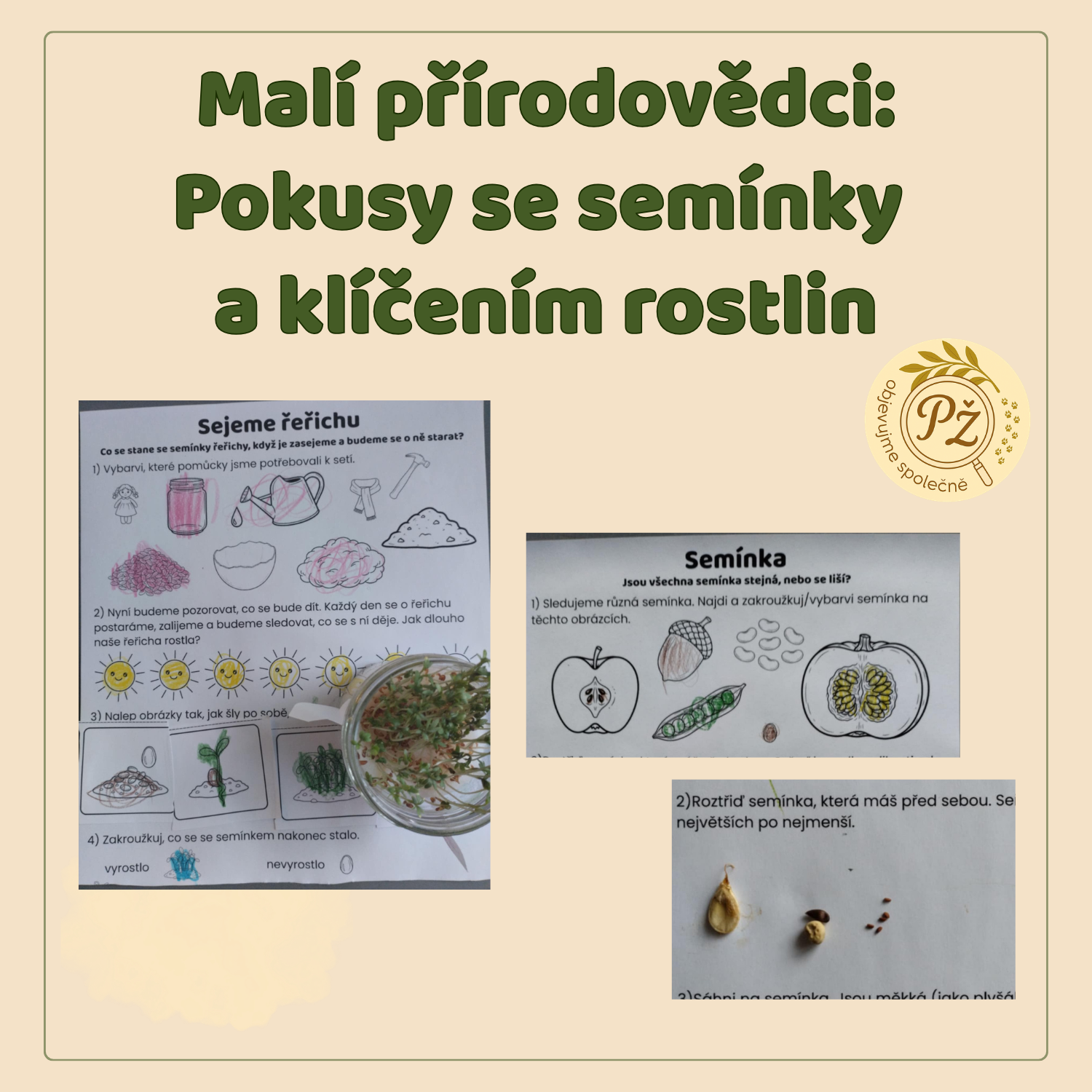 Připravila jsem sadu pracovních listů a metodických návrhů, sada je určena pro malé přírodovědce. Budeme zde pozorovat semínka, klíčení a růst rostlin, to vše formou jednoduchých pokusů a badatelských aktivit.