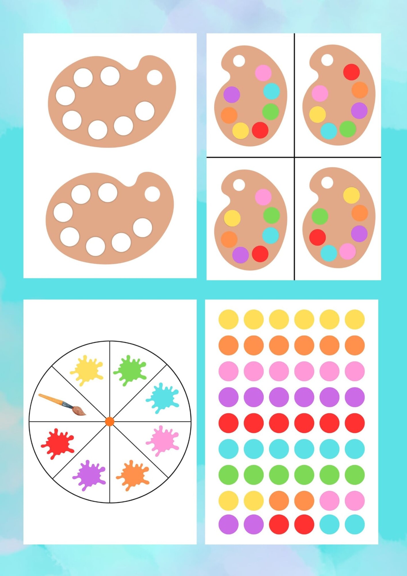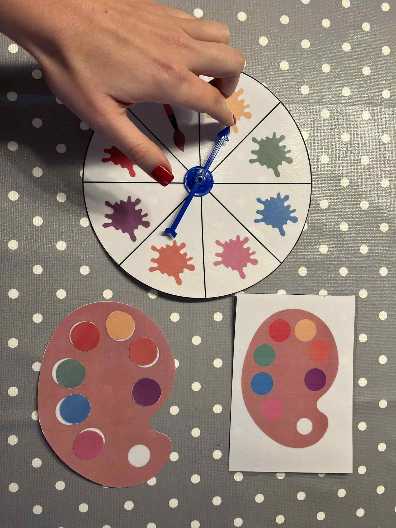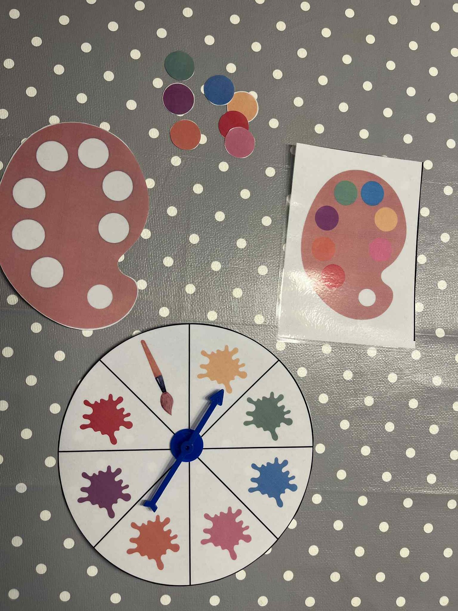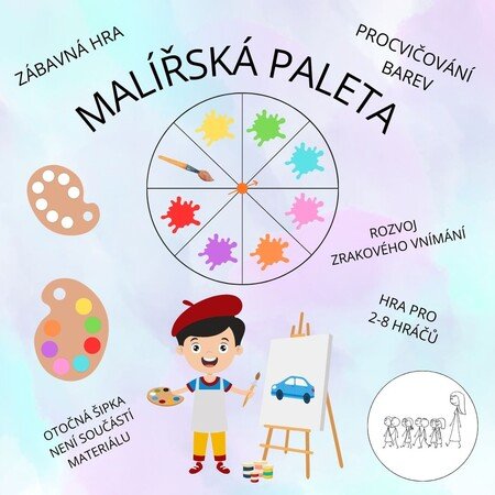 Tato hra je pro 2 až 8 hráčů. Každý hráč si vybere prázdnou malířskou paletu a kartu s barevným vzorem palety. Úkolem je poskládat na své paletě stejný barevný vzor, jaký je uveden na kartě. Hráč ve svém tahu otočí šipkou a zjistí, jakou barvu získává. Pokud tuto barvu na své paletě potřebuje, může ji umístit na odpovídající místo. Pokud barvu nepotřebuje nebo ji už na paletě má, jeho tah končí. Když hráč získá políčko se štětcem, může si vybrat libovolnou barvu. Vítězem se stává ten, kdo jako první kompletně zaplní svou paletu správnými barvami.