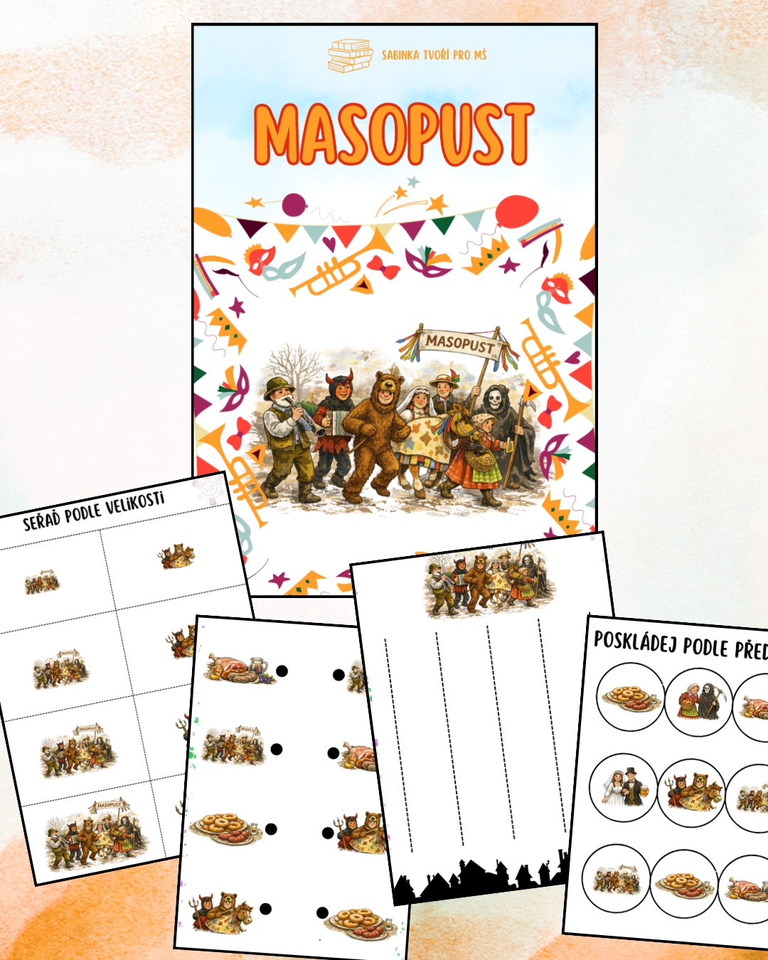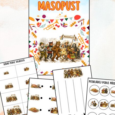Připravila jsem pro vás zábavný a komplexní materiál na téma Masopust, který děti nejen baví, ale zároveň rozvíjí různé dovednosti.