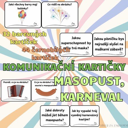Jedná se o kartičky do komunitního kruhu na téma: masopust, karneval.