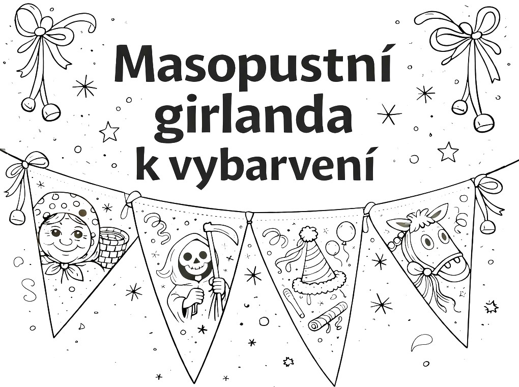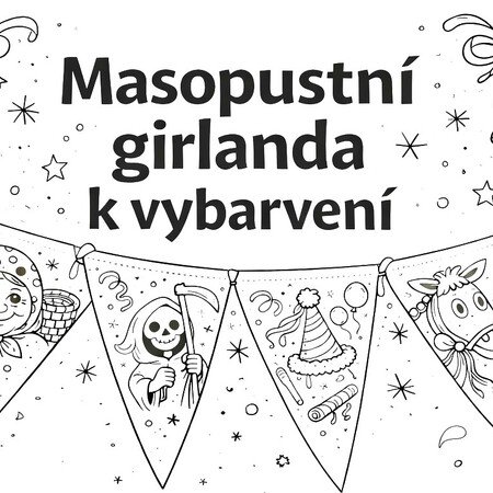 Vlaječky stačí vytisknout, vybarvit + vystřihnout a rozvěsit do veselé masopustní girlandy.