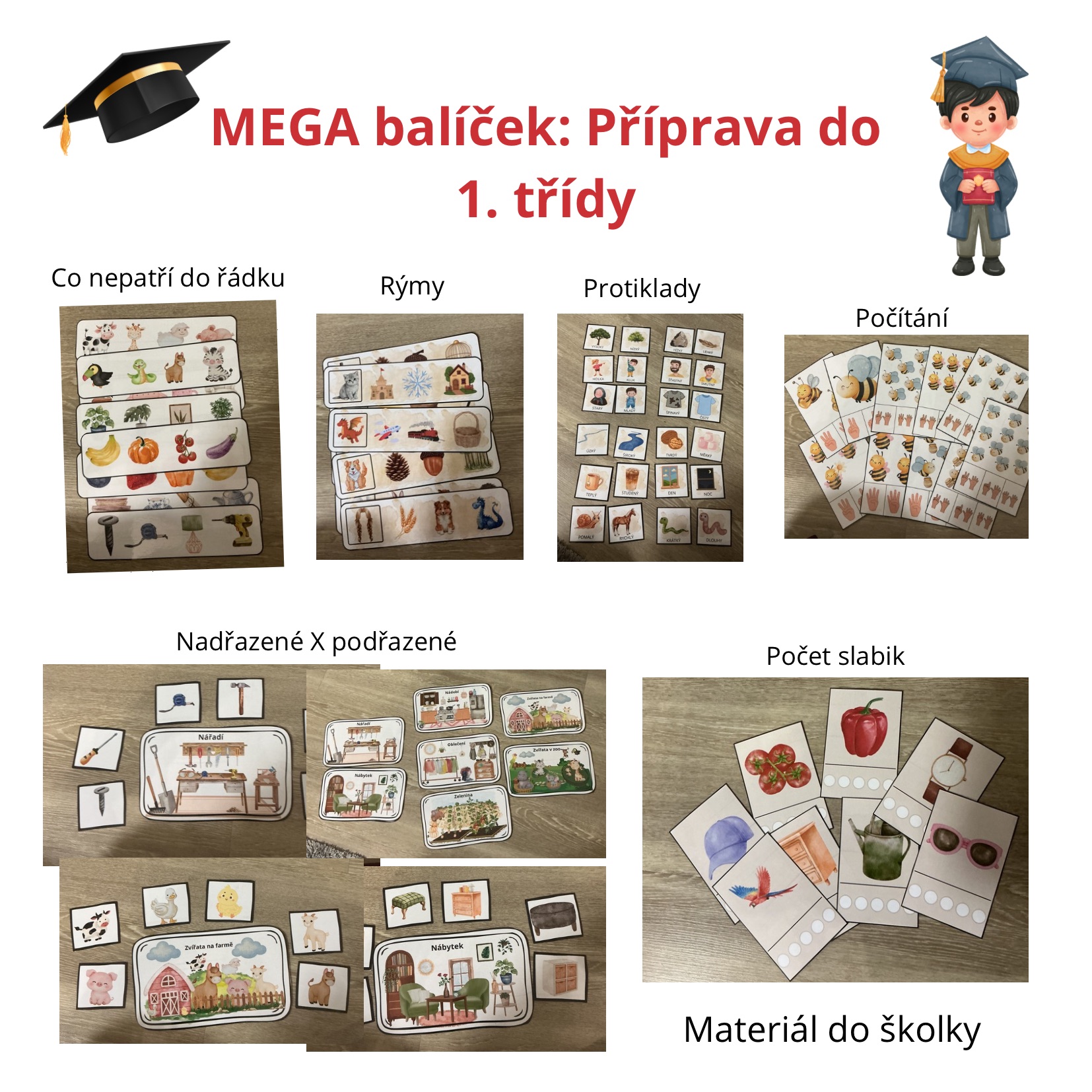 Hravý pracovní balíček pro děti před nástupem do 1. třídy ZŠ. Materiál rozvíjí důležité dovednosti potřebné pro školní připravenost a je vhodný pro MŠ i domácí procvičování.