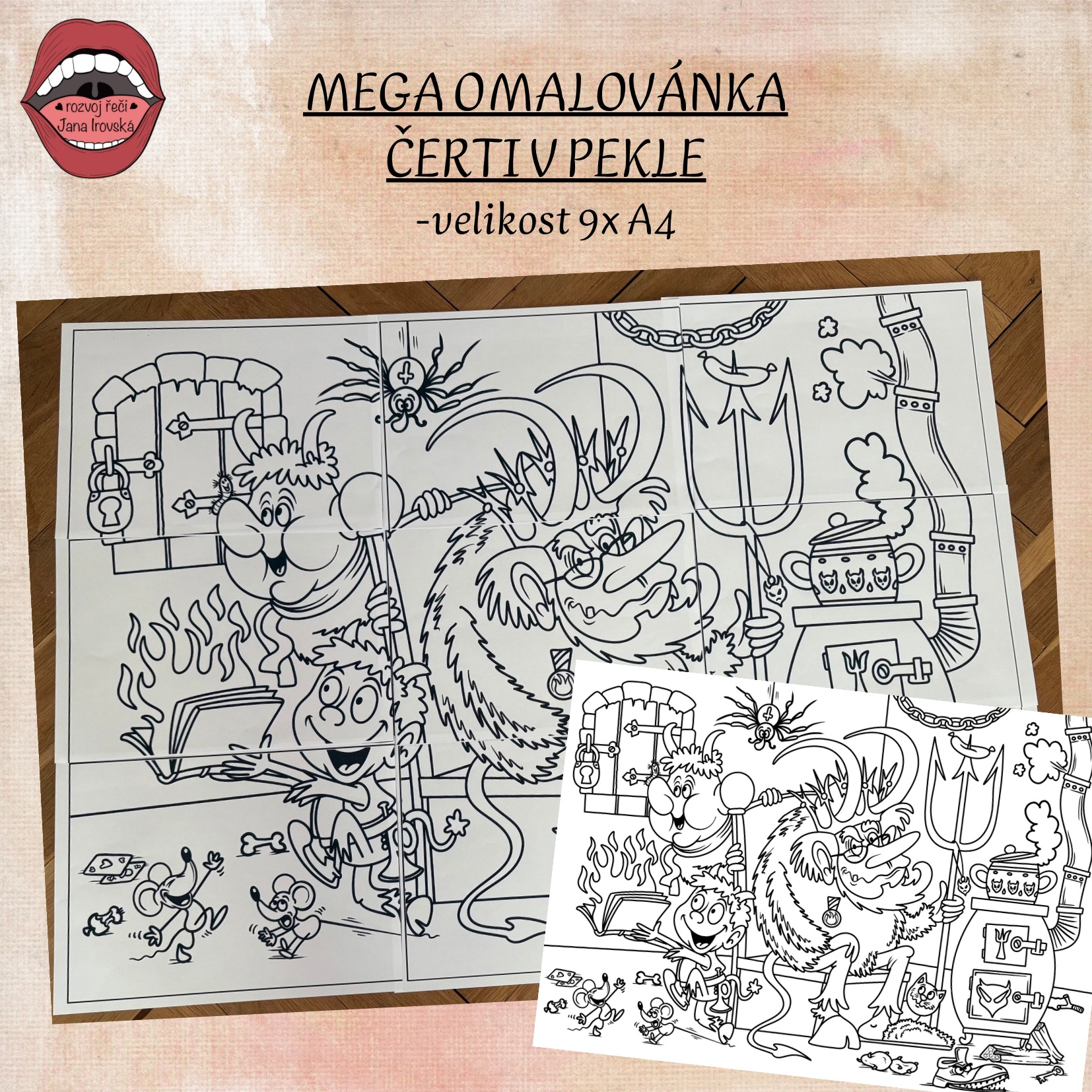 Soubor obsahuje mega omalovánku čerti v pekle o velikosti 9xA4.