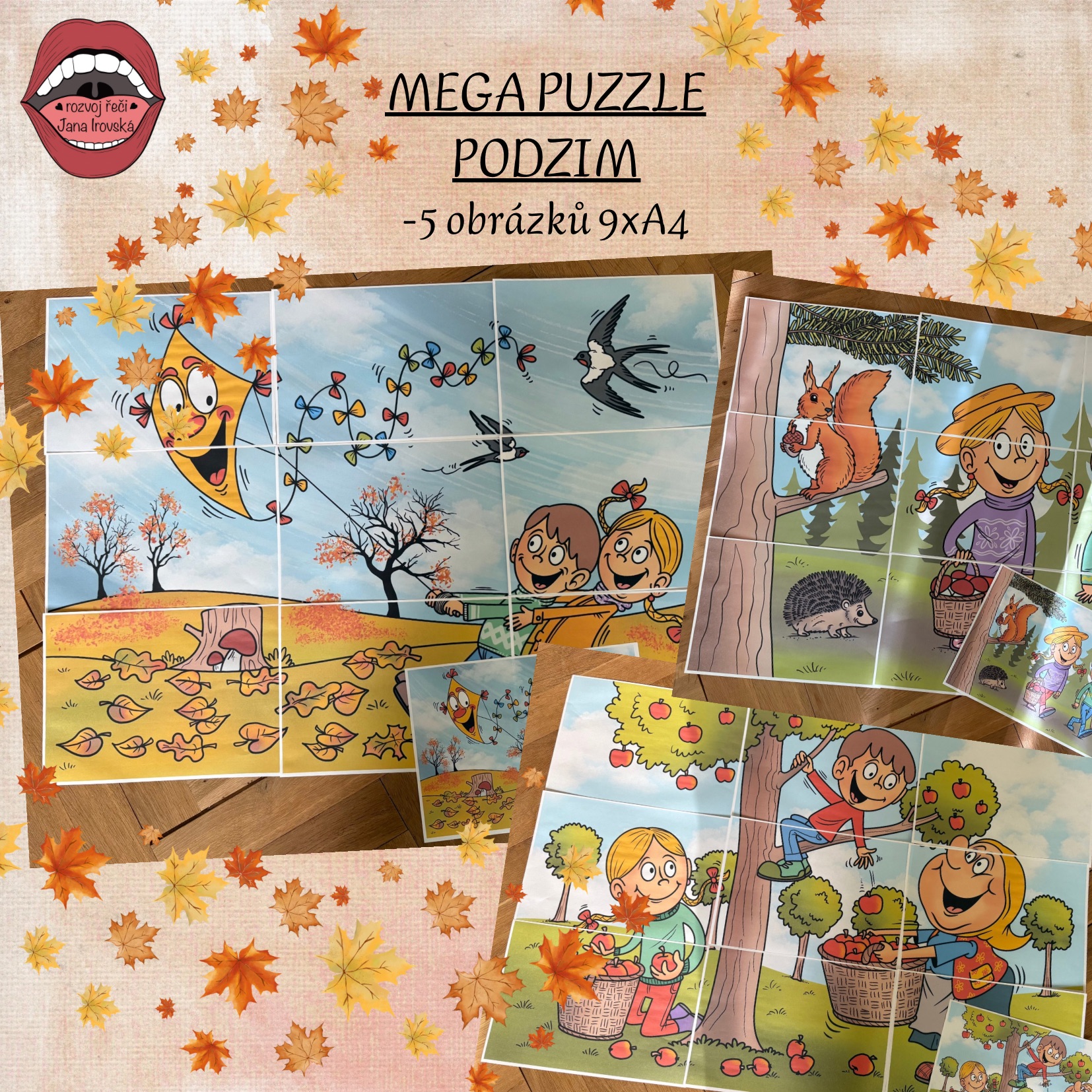Soubor obsahuje mega puzzle na téma podzim, jeden obrázek o velikosti 9x A4 (5 obrázků).