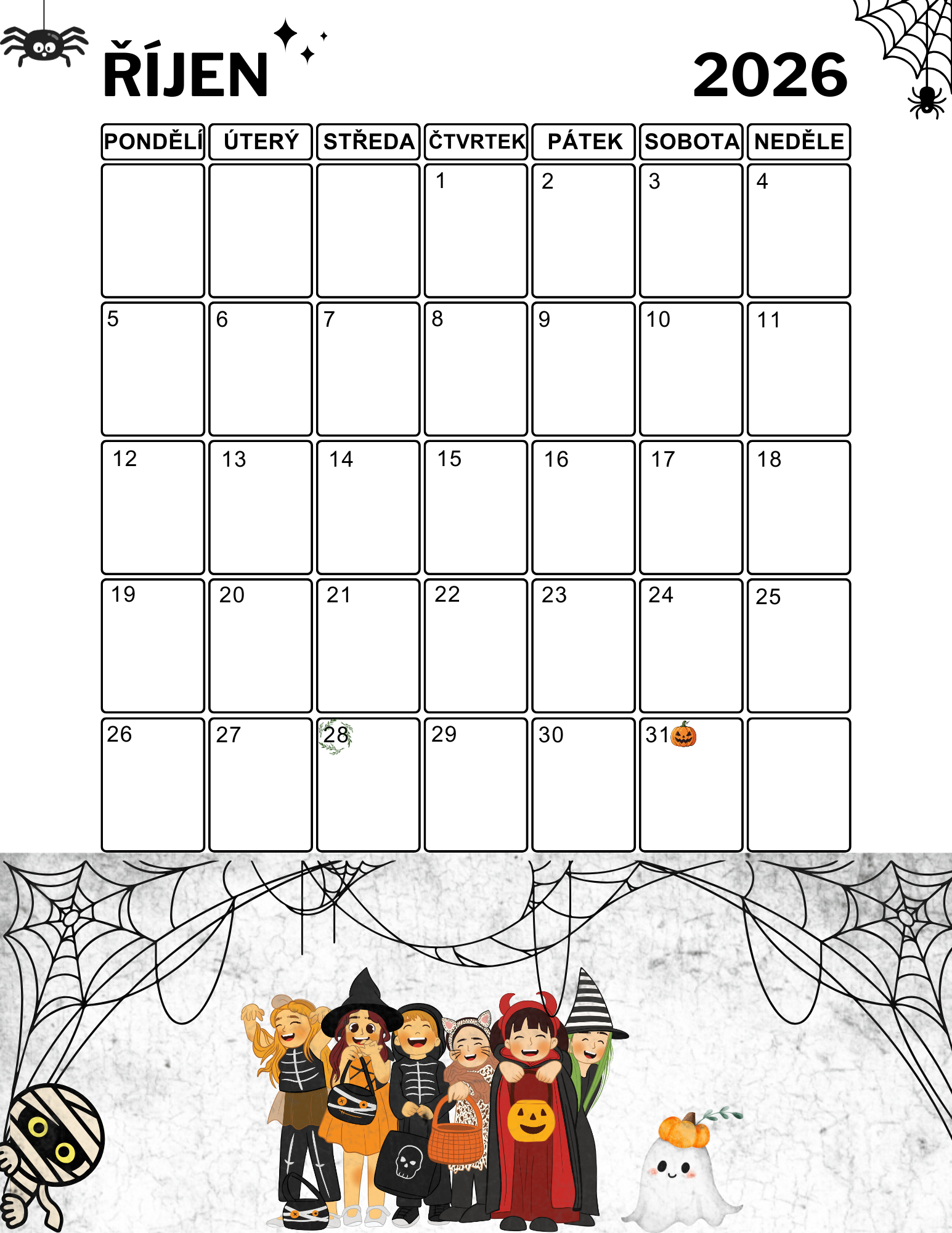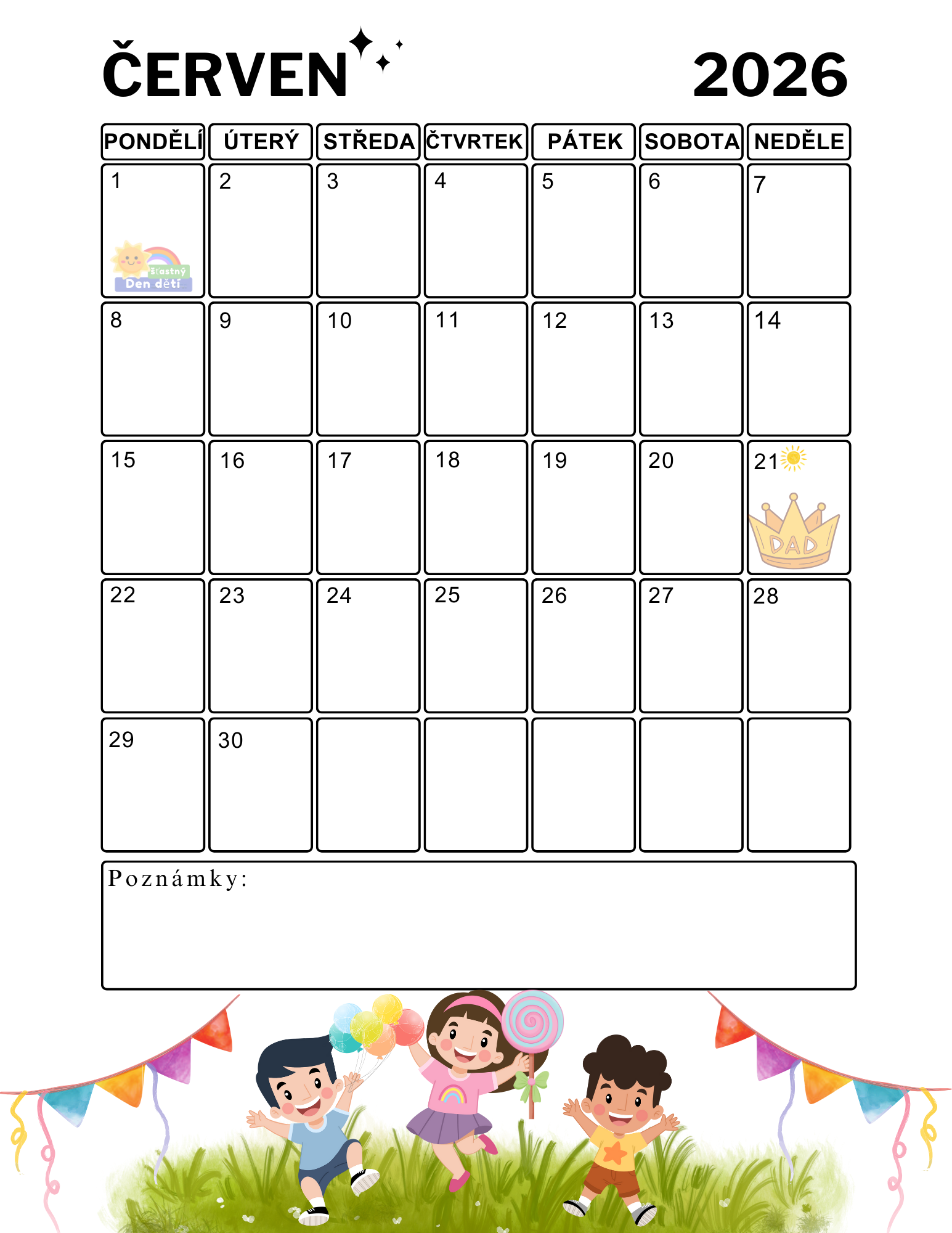 Měsíční kalendář pro rok 2026 s obrázky. Soubor obsahuje dvě verze jednu s prostorem na poznámky a drahá verze bez poznámek. V kalendáři jsou označeny svátky.