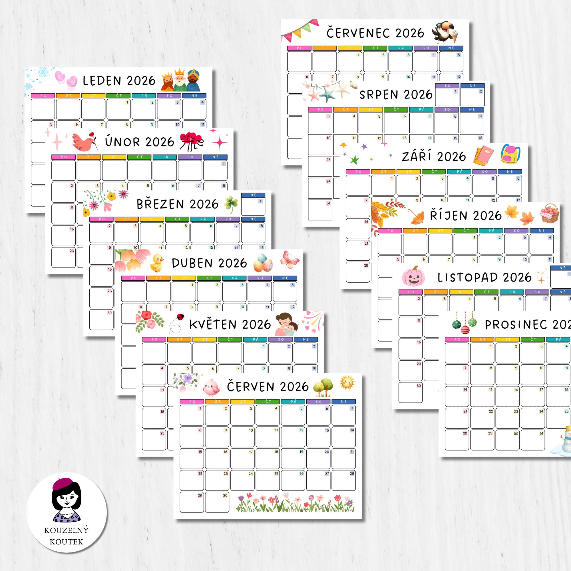 🎨 Každý měsíc odpovídající ilustrace pro roční období