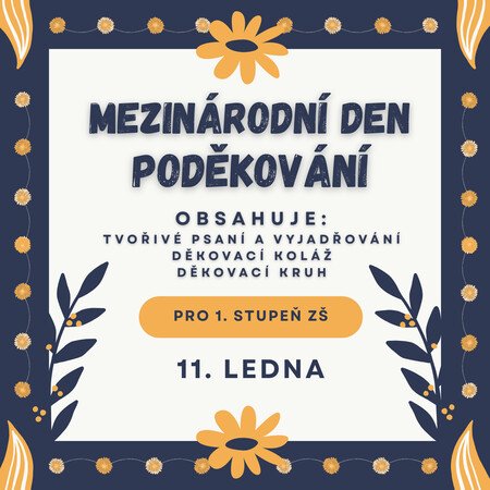 Proměňte běžný školní den v oslavu laskavosti a vděčnosti! Tento originální materiál k Mezinárodnímu dni poděkování je navržen tak, aby děti na 1. stupni ZŠ vedl k uvědomění si, co všechno mají, koho si váží a proč je důležité říkat „děkuji“.