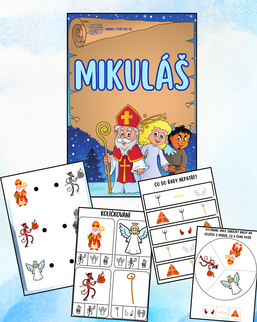 Připravte dětem kouzelné mikulášské dopoledne s bohatým vzdělávacím balíčkem, který rozvíjí fantazii, myšlení i jemnou motoriku.