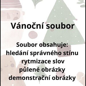 Nabízím Vánoční soubor Soubor obsahuje hledání stejného stínu, rytmizaci slov, půlené obrázky, demonstrační obrázky 🎁🎄