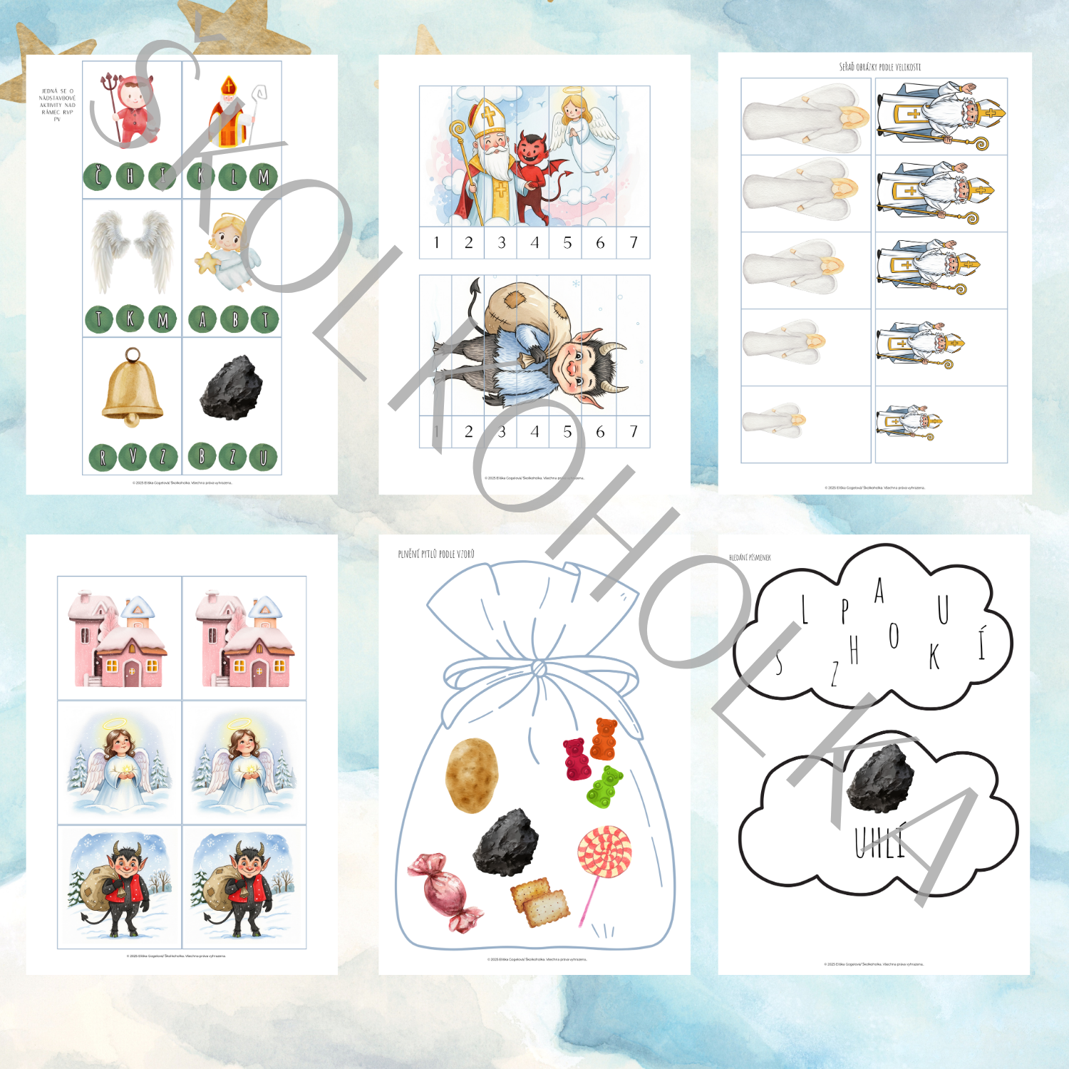 představuji vám komplexní PDF soubor "Mikuláš, čertík a anděl" , který přinese kouzelnou a vzdělávací atmosféru Mikulášské nadílky do vaší třídy! Tento balíček je plný rozmanitých a interaktivních materiálů určených pro rozvoj klíčových dovedností vašich dětí.
