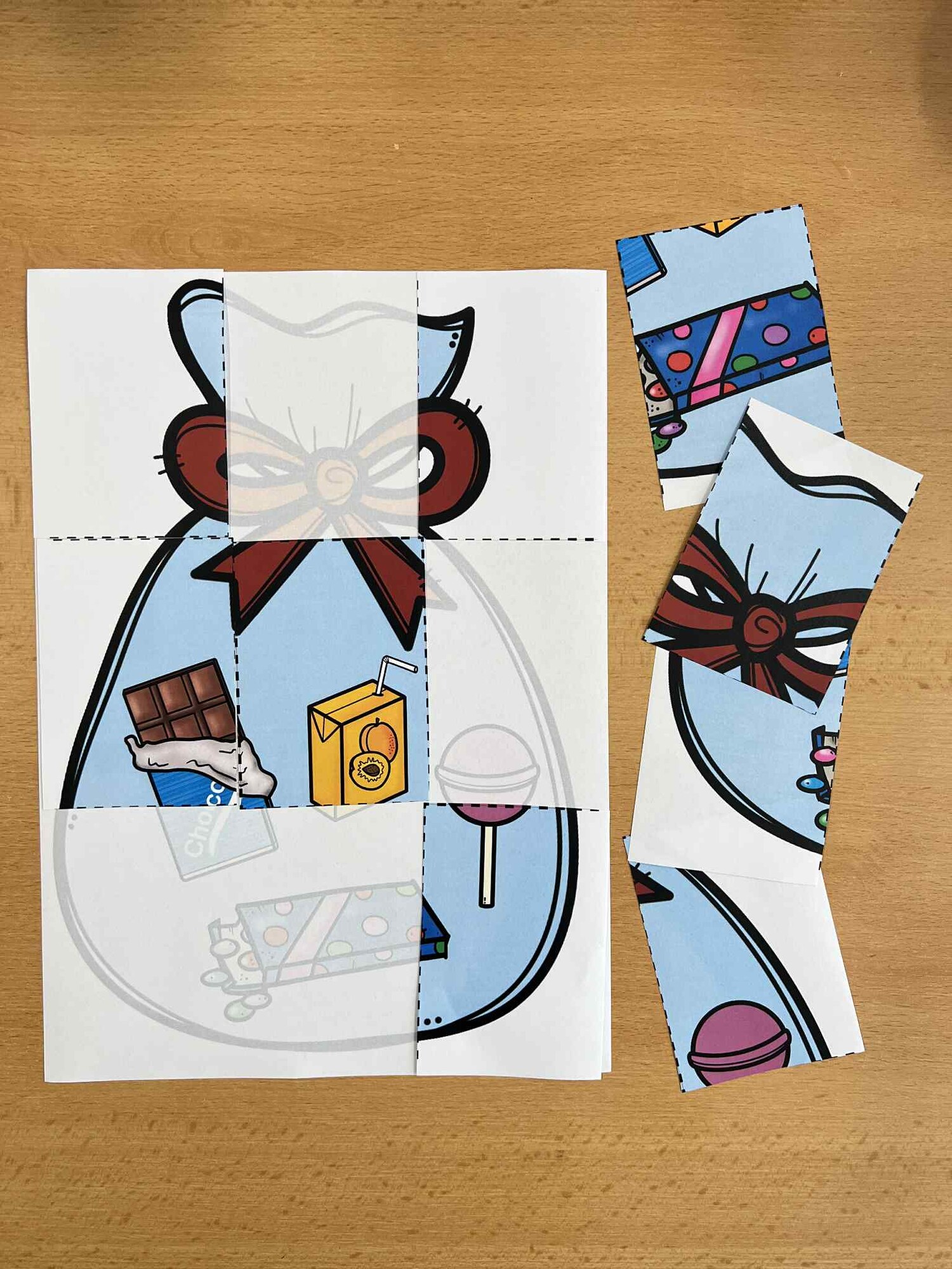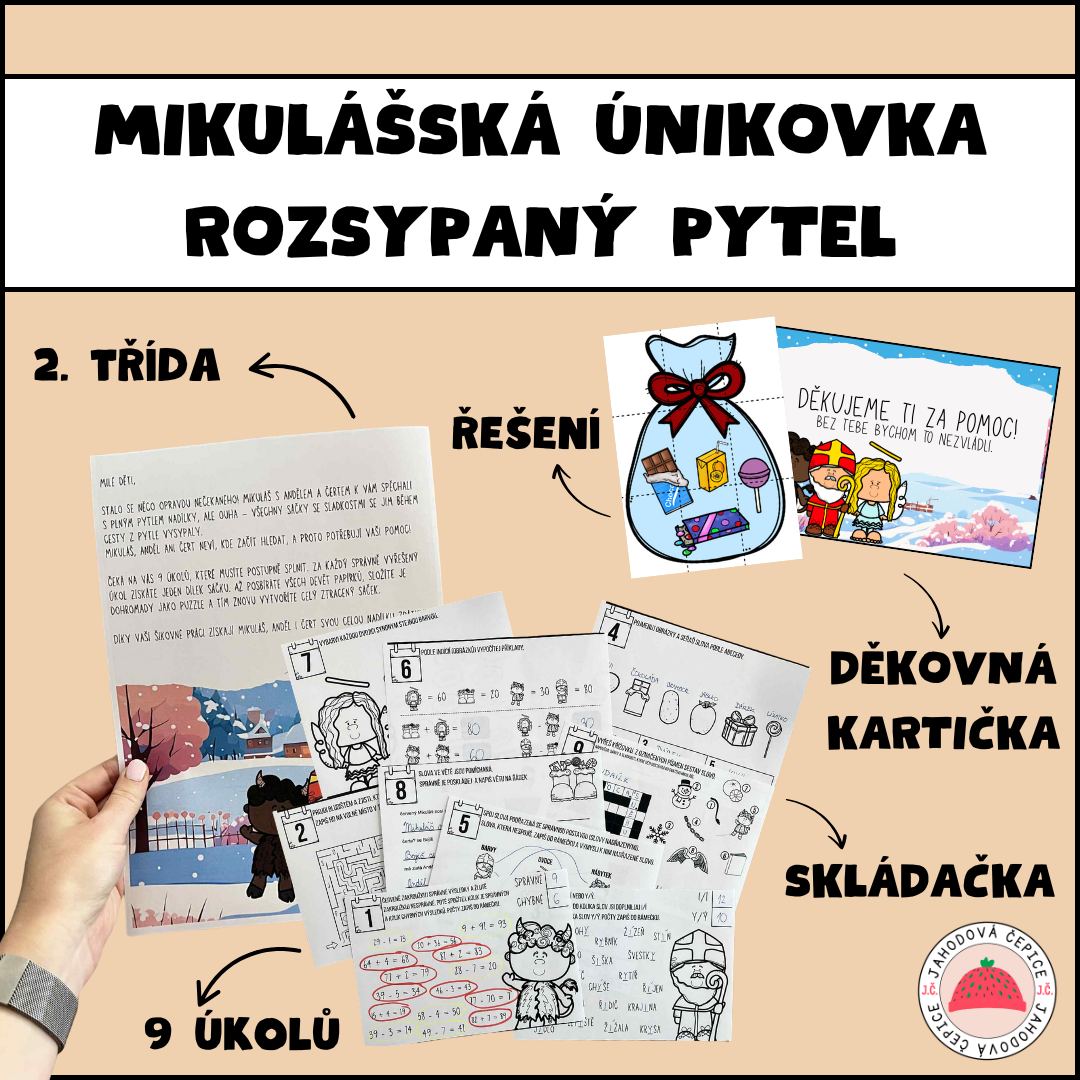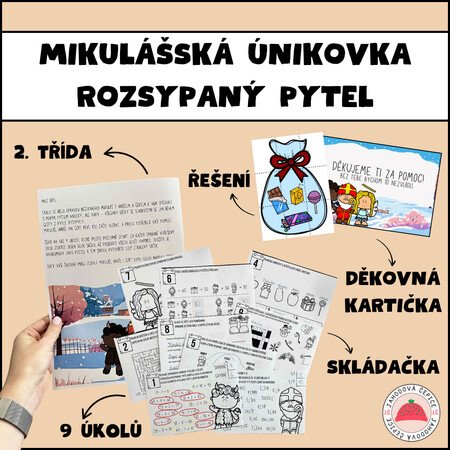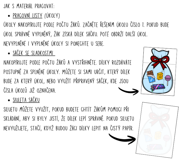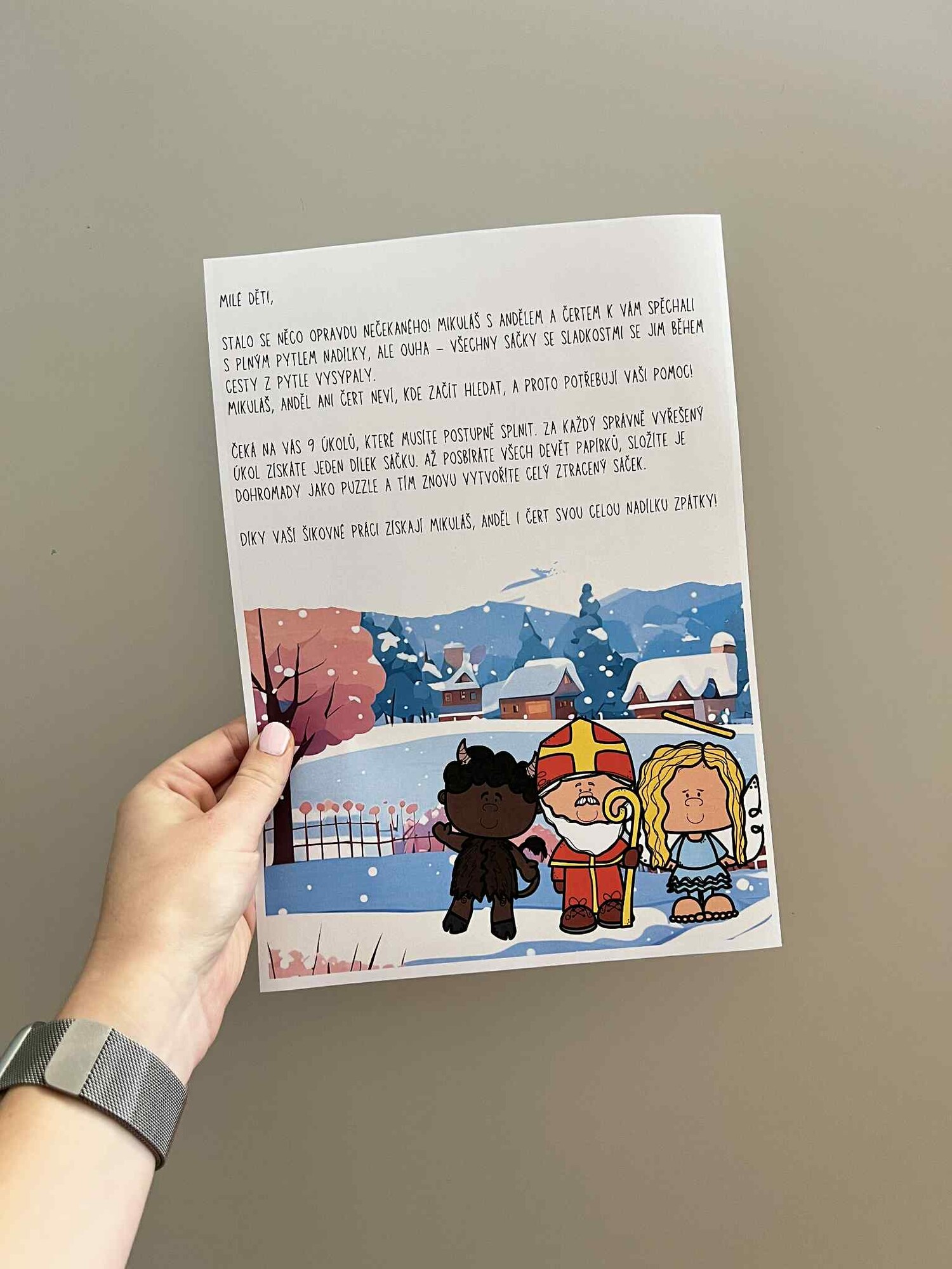 Pokud žáci splní všech 9 připravených úkolů, postupně získají dílky ztracených sáčků. Nakonec si sáčky složí jako puzzle a Mikuláš, anděl a čert tak dostanou svou nadílku zpět.
