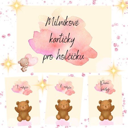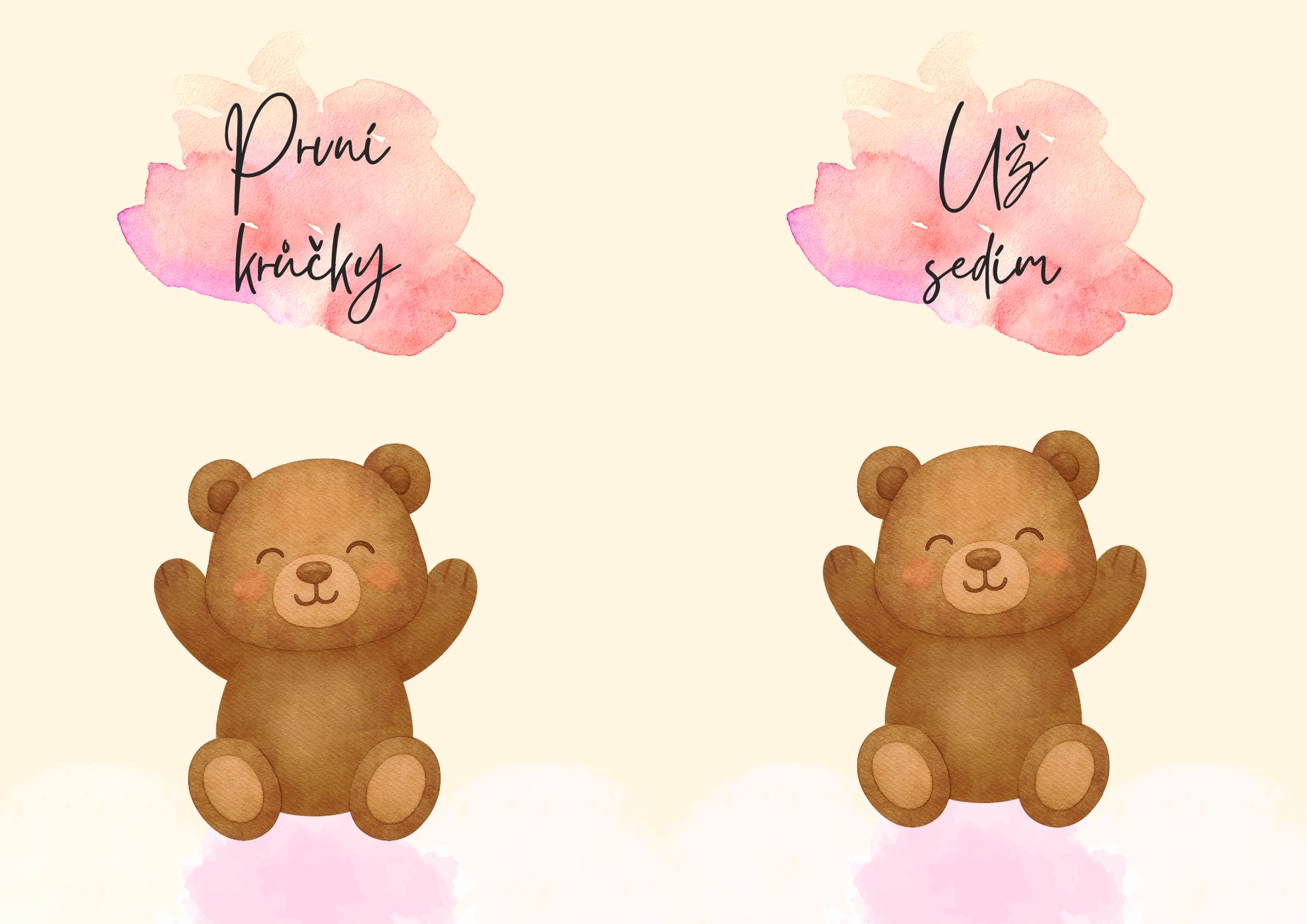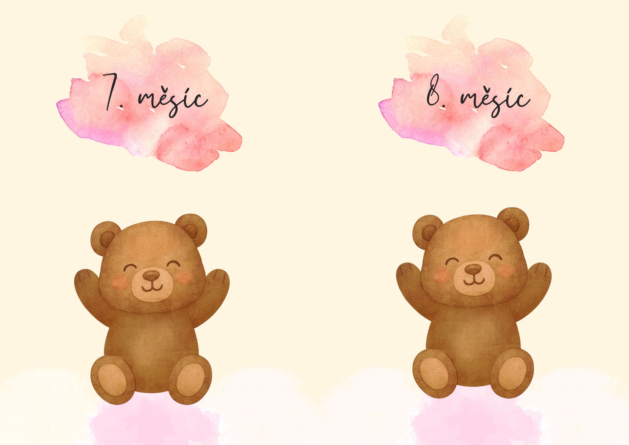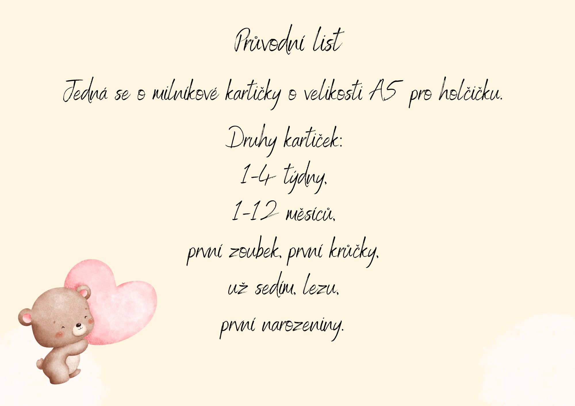 Jedná se o milníkové kartičky o velikosti A5 pro holčičku s medvídkem.