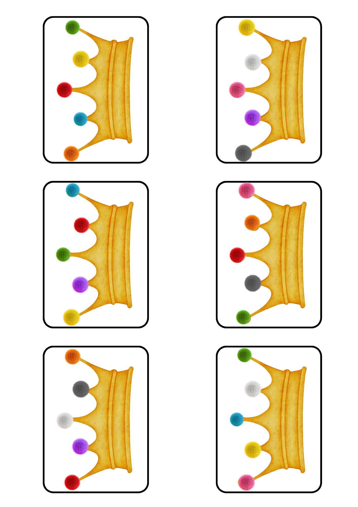 - 👑 Velká šablona koruny - doplňování barevných molitanových nebo chlupatých míčků (jemná motorika)