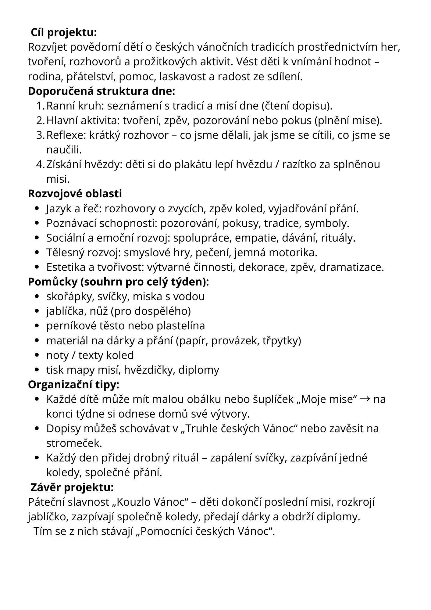 Týdenní vánoční projekt s příběhem, tradicemi a kouzlem českých Vánoc