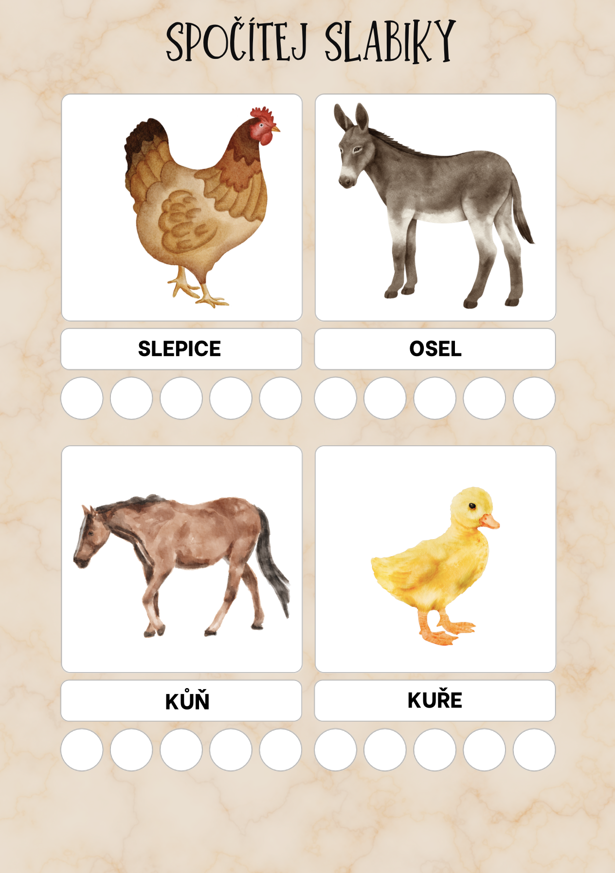🔹 Pohybové hry – Farmářská rozcvička, Zvířátka utíkají z ohrady, Spící zvířátka na statku