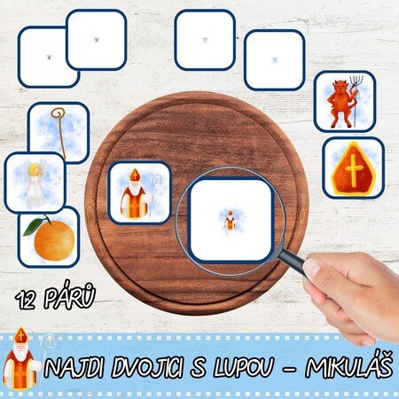 Stačí vytisknout, zalaminovat a vystřihnout kartičky. K hledání budete potřebovat lupu – ta dodá celé hře prvek tajemství a dobrodružství. Děti prozkoumávají malé obrázky a jen díky zvětšení mohou najít správné dvojice.