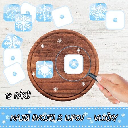 Součástí PDF materiálu je 24 kartiček (12 párů) se sněhovými vločkami, které děti zaujmou a vtáhnou do hry.