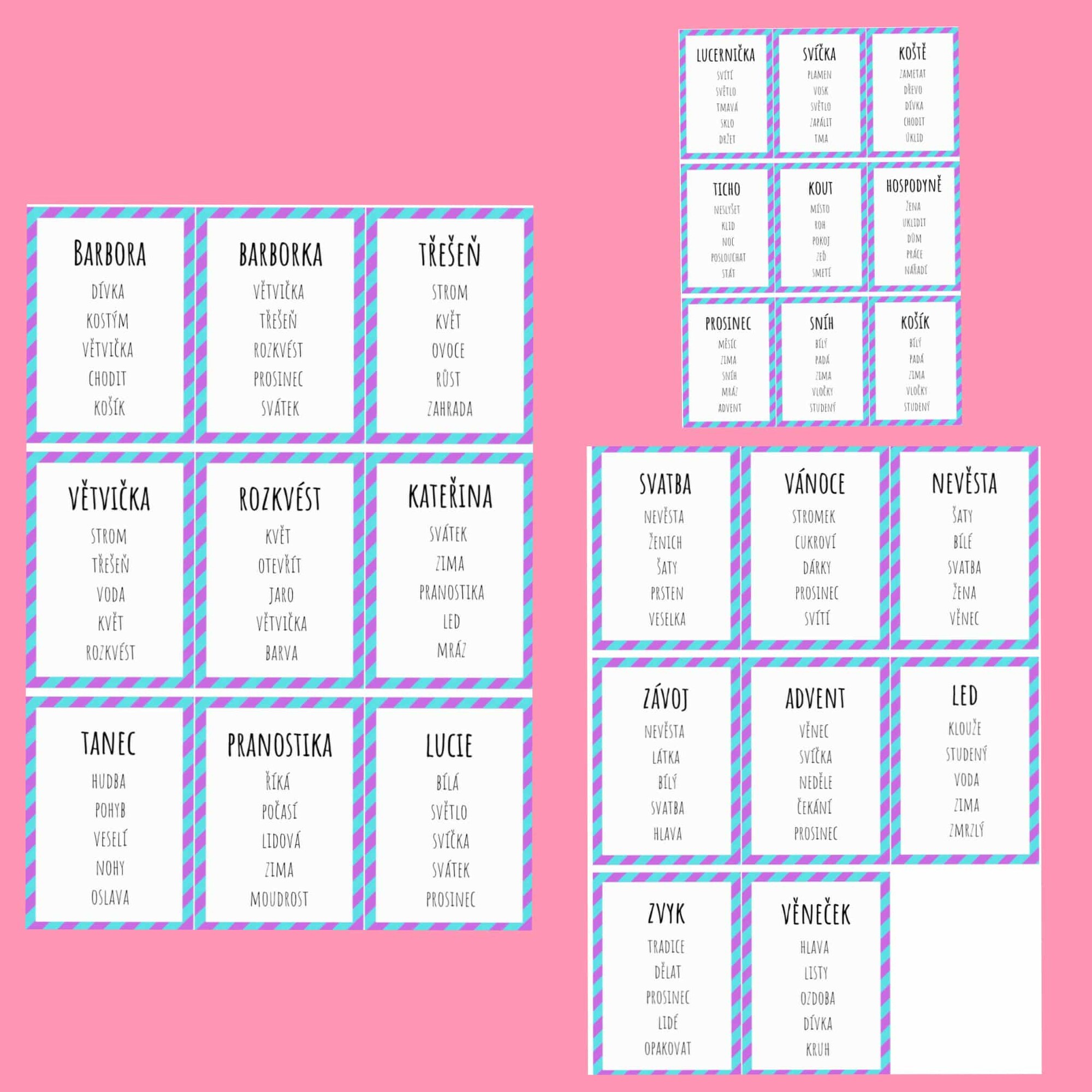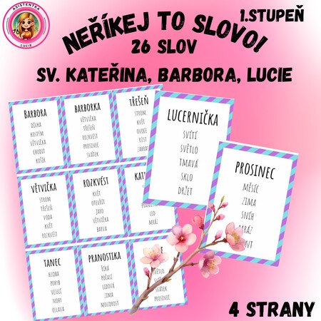 Výukový materiál NEŘÍKEJ TO SLOVO! je vytvořen na motivy známé hry TABU a zaměřuje se na tradiční prosincové postavy – sv. Barboru, sv. Kateřinu a sv. Lucii.