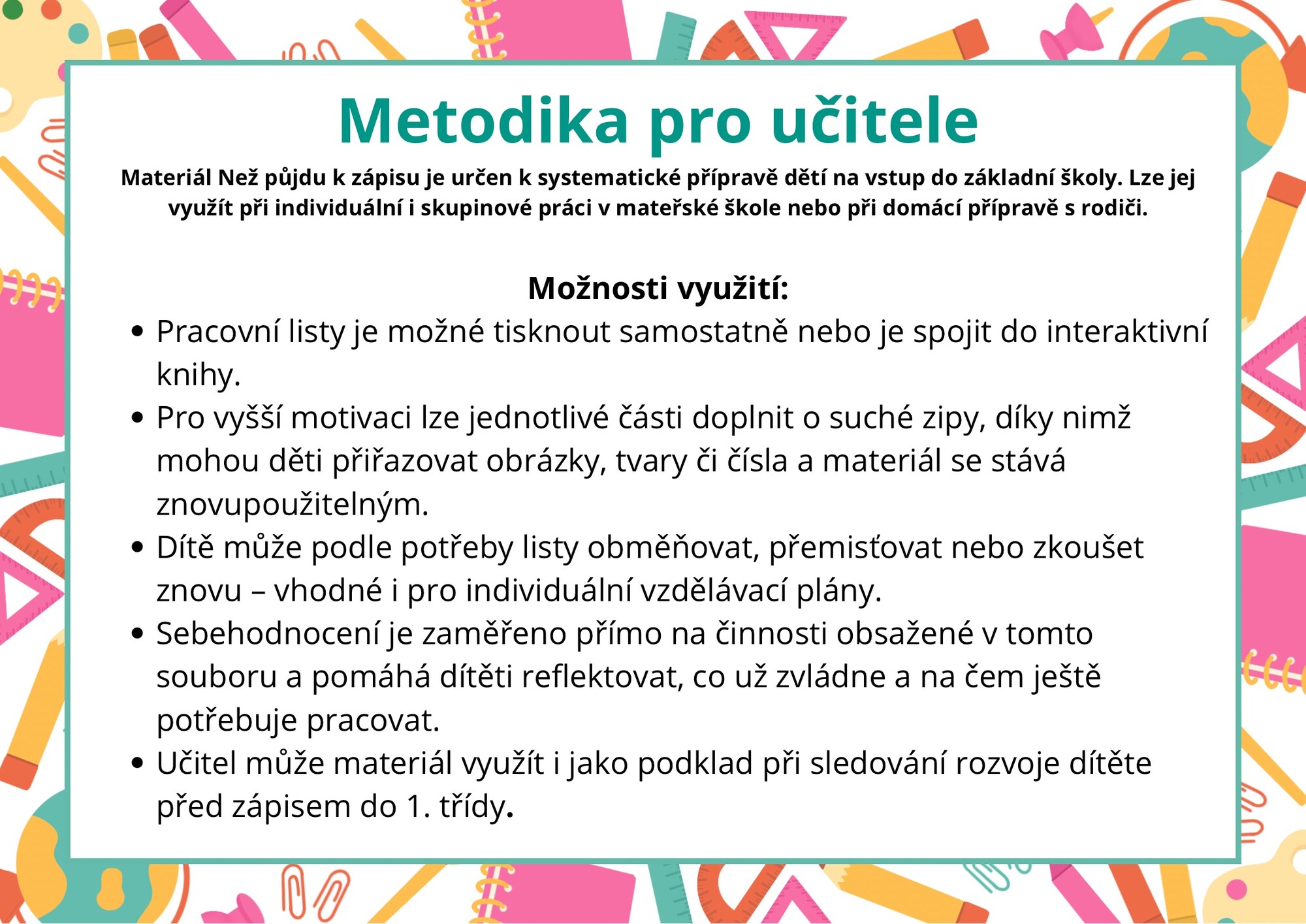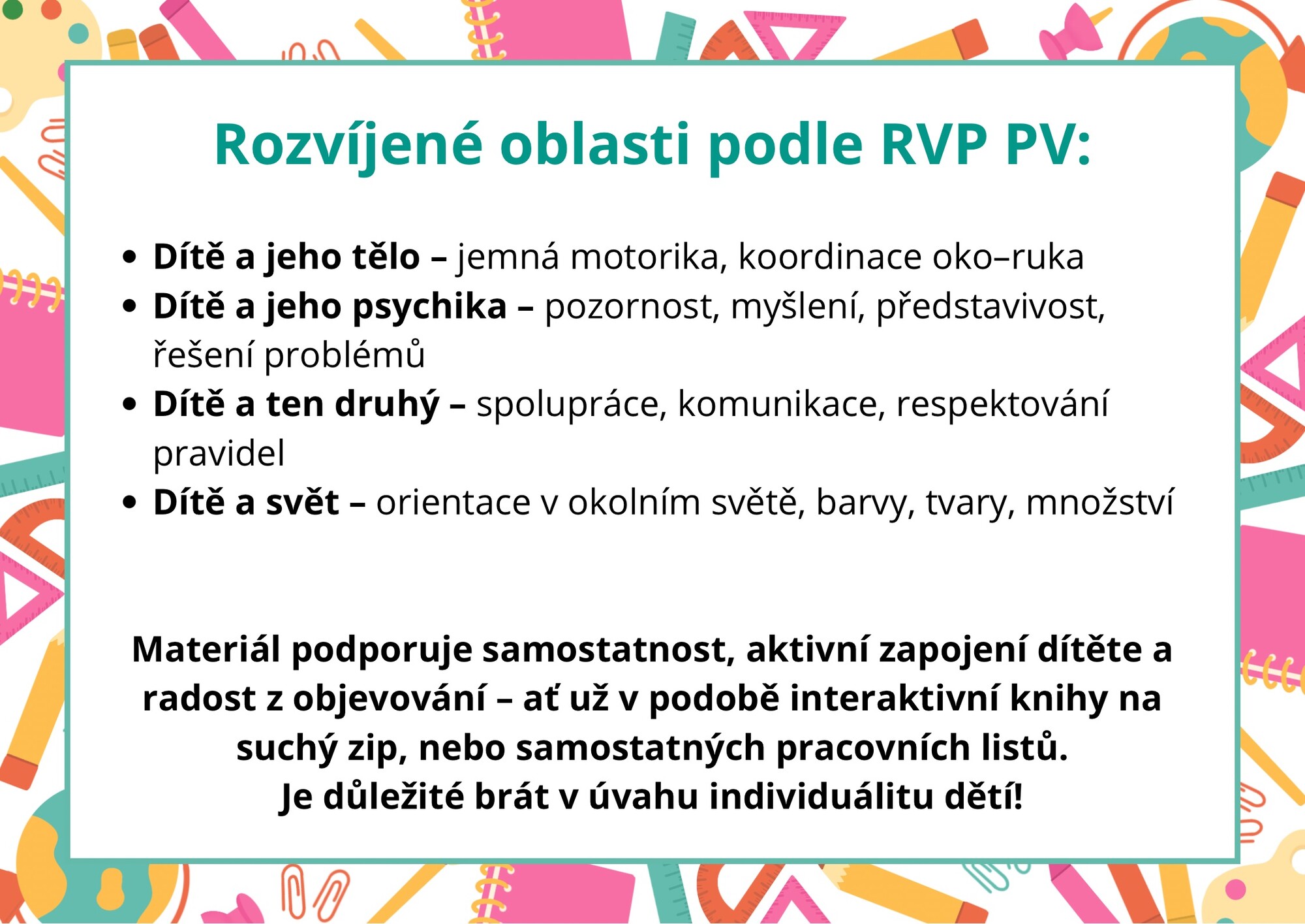 Materiál podporuje samostatnost, soustředění a radost z učení.