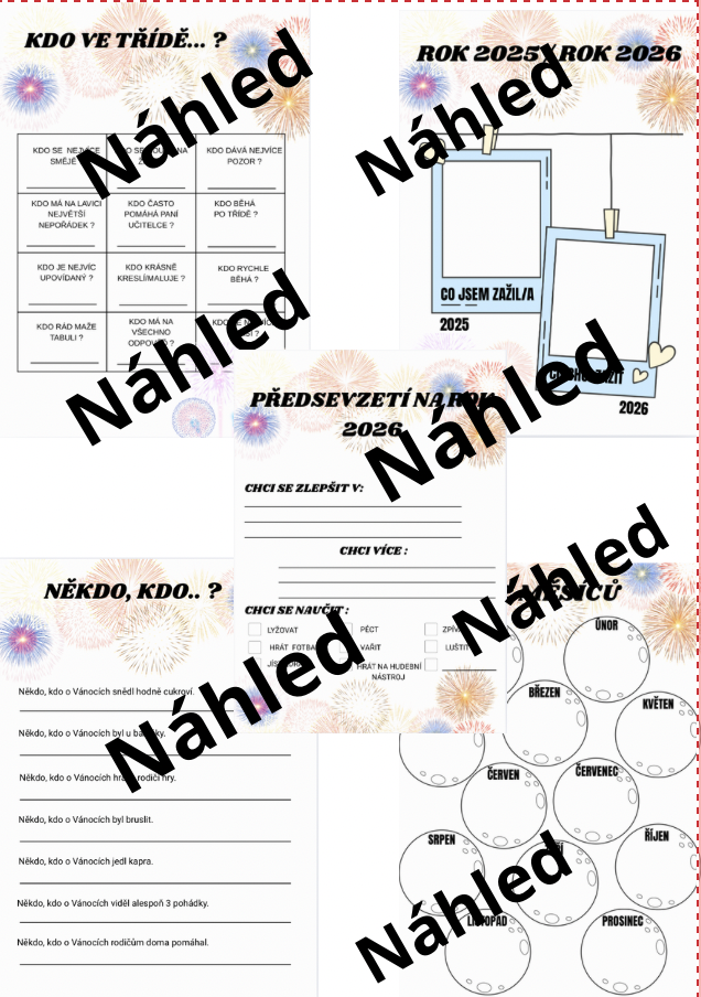 Materiál obsahuje 5 novoročních aktivit, při kterých se žáci zamyslí a pobaví.