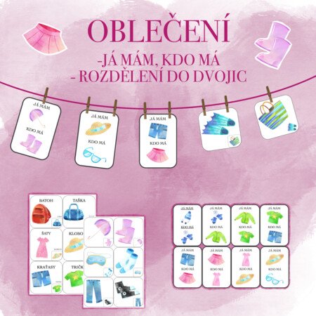 Tento soubor obsahuje dvě aktivity - rozdělení do dvojic a já mám, kdo má. Vše je připraveno k jednostrannému tisku A4. Karty jsou ve dvou provedeních - s oblými a s ostrými rohy. Pro delší životnost je vhodné karty zalaminovat.