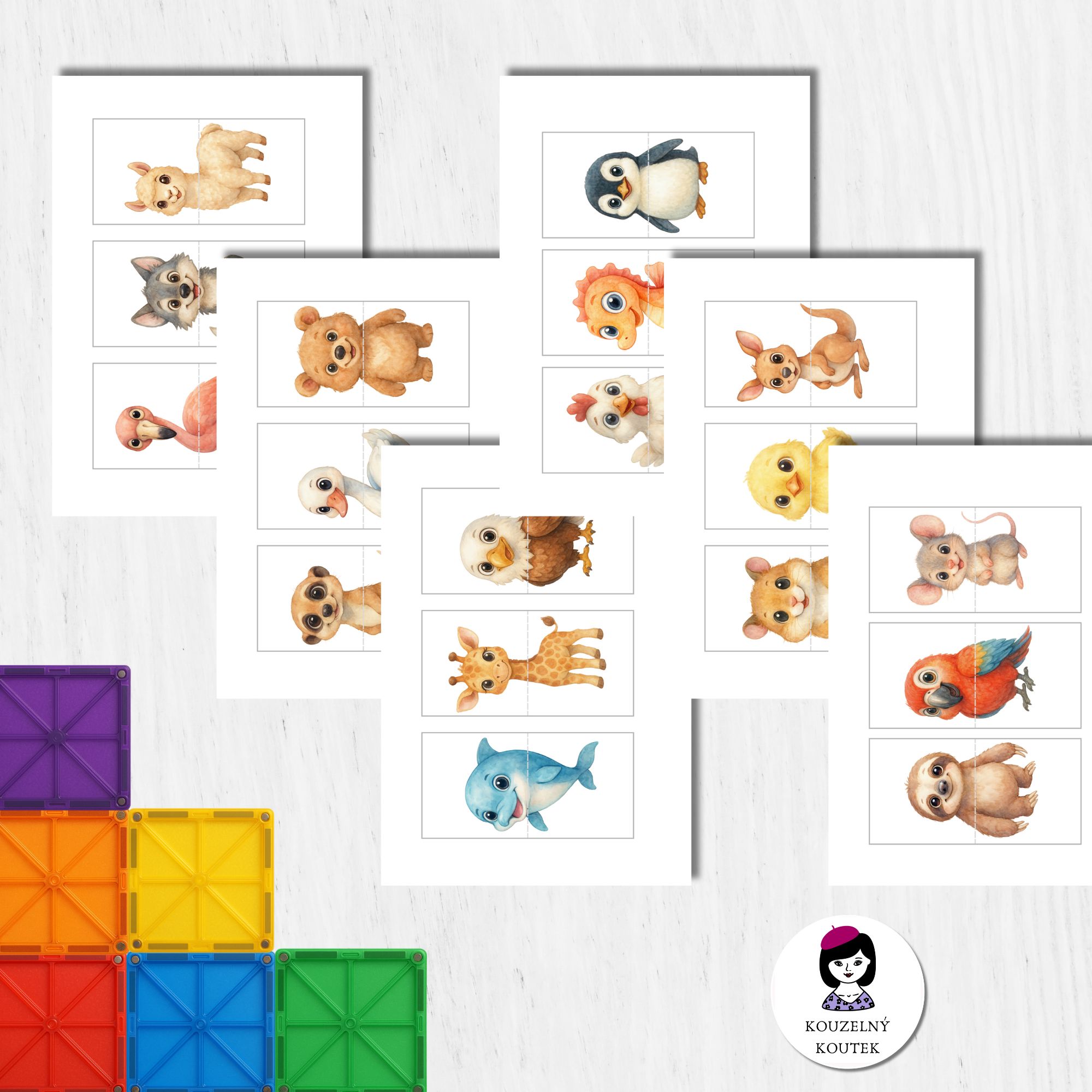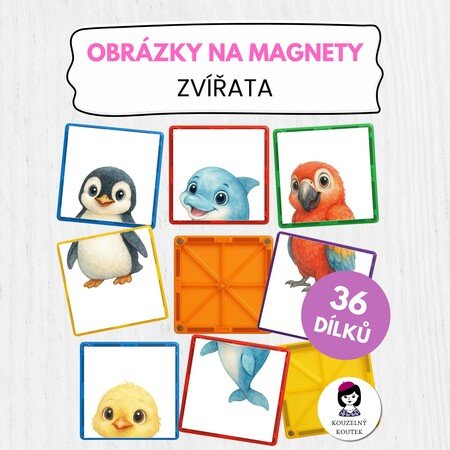 Jedná se o doplněk k magnetickým stavebnicím, které díky obrázkům přetvoříte na magnetické puzzle.🎲Použitelné pro magnetické čtverce (typu Magna-tiles, Connetix, PicassoTiles a další), které mají rozměr čtverce cca 7,5 x 7,5 cm. 🎲Každý obrázek se skládá pouze ze dvou dílků, což podporuje rozvoj jemné motoriky, trpělivosti a logického myšlení.🎲Soubor vytiskněte, rozstříhejte a nalepte na magnetické čtverce:pomocí suchého zipupomocí lepicích teček nebo oboustranné páskypomocí průhledné lepicí páskyTento produkt není nijak spojen, schválen ani vyráběn značkami Magna-Tiles, Connetix, PicassoTiles ani žádnou jinou značkou magnetických stavebnic. Nejedná se o oficiální produkt spojený se značkami výše uvedenými.