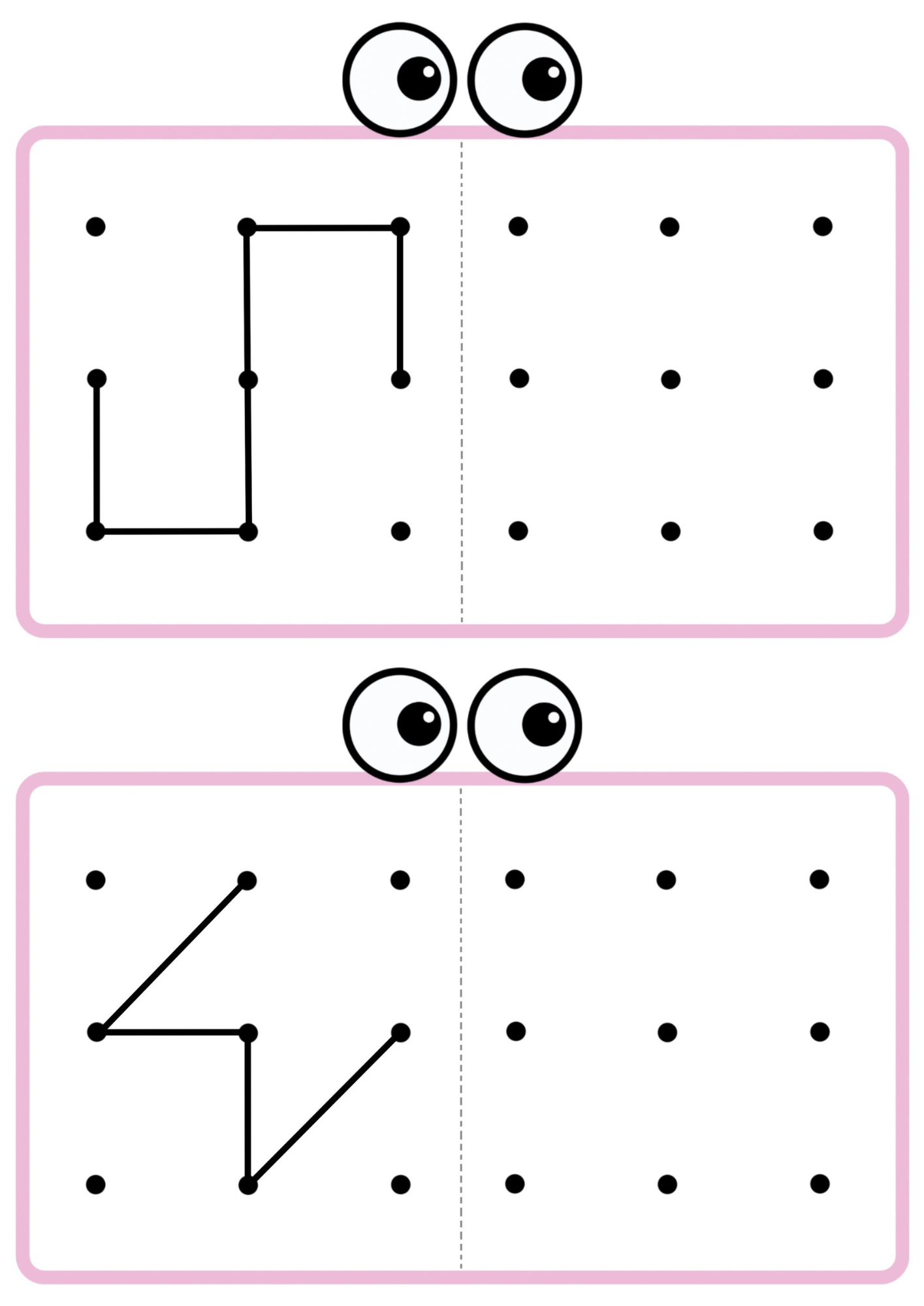 Tato aktivita je zaměřena na rozvoj zrakového vnímání a koordinace oko–ruka. Děti podle předlohy sledují očima směr a pořadí bodů a následně je spojují čarou. Procvičují tak pozornost, soustředění, orientaci na ploše a jemnou motoriku, které jsou důležité pro pozdější psaní.