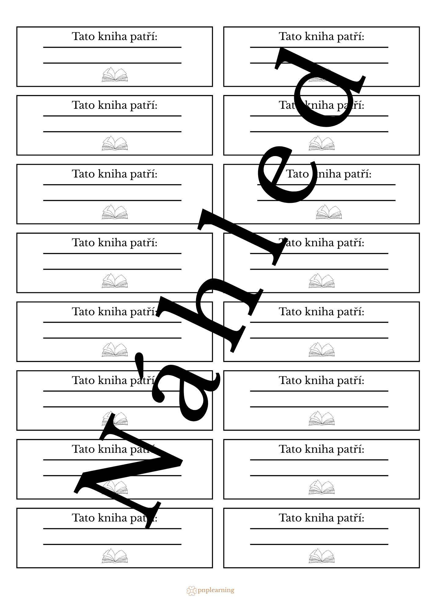 - Vytiskněte (ideálně na samolepicí papír) a nalepte dovnitř knih.