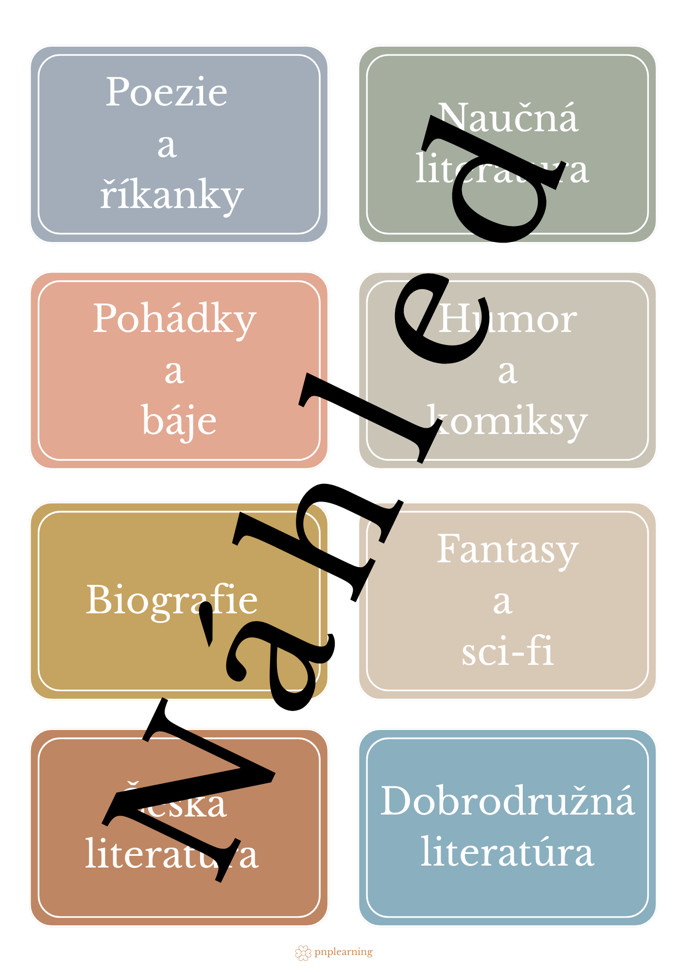 - Vytiskněte a označte jimi knihy podle žánrů (pohádky, poezie atd.).