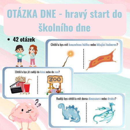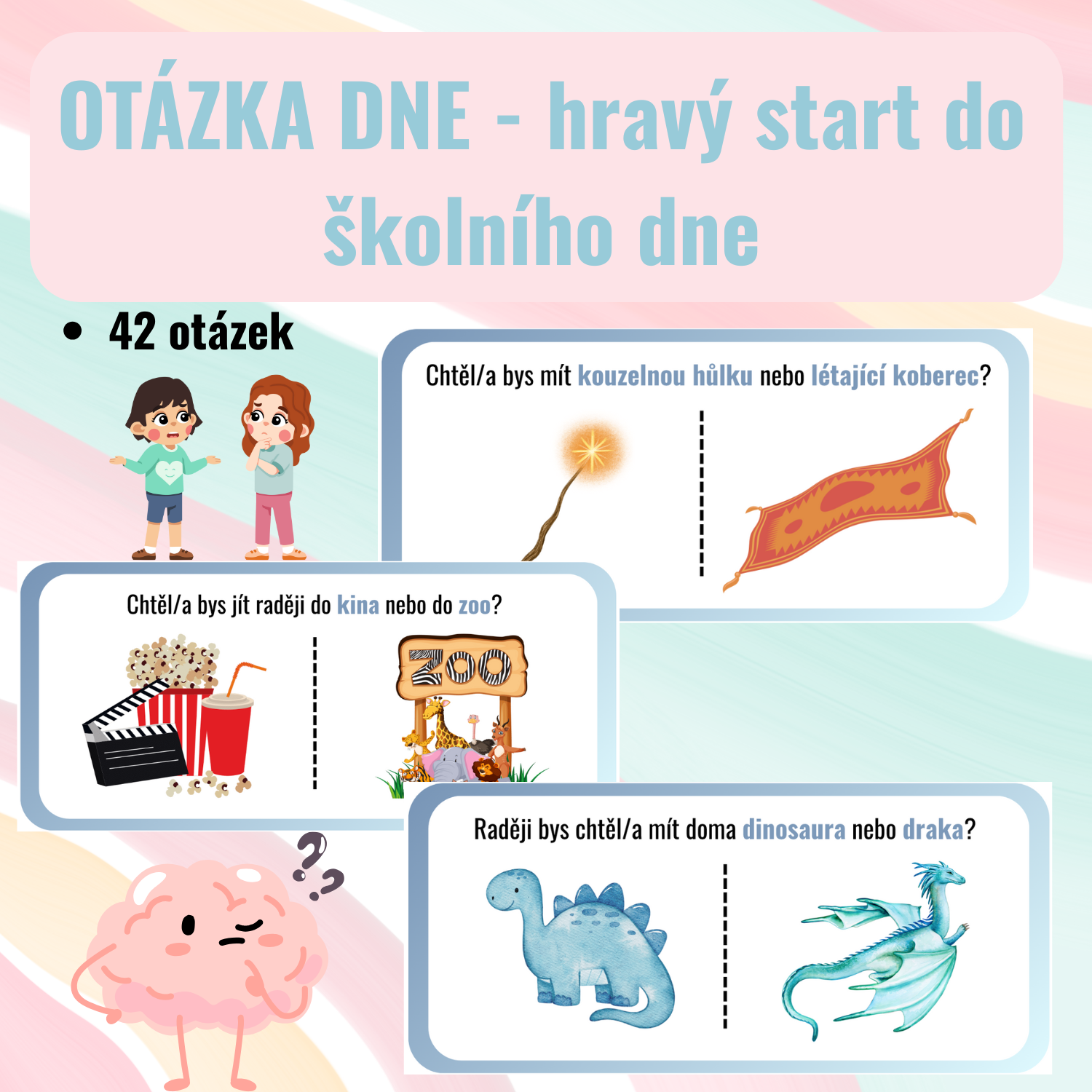 - Oživte ranní příchod do třídy pomocí zábavných otázek, které děti zapojí do hovoru, podpoří vzájemné vztahy a vytvoří příjemnou náladu na celý den.