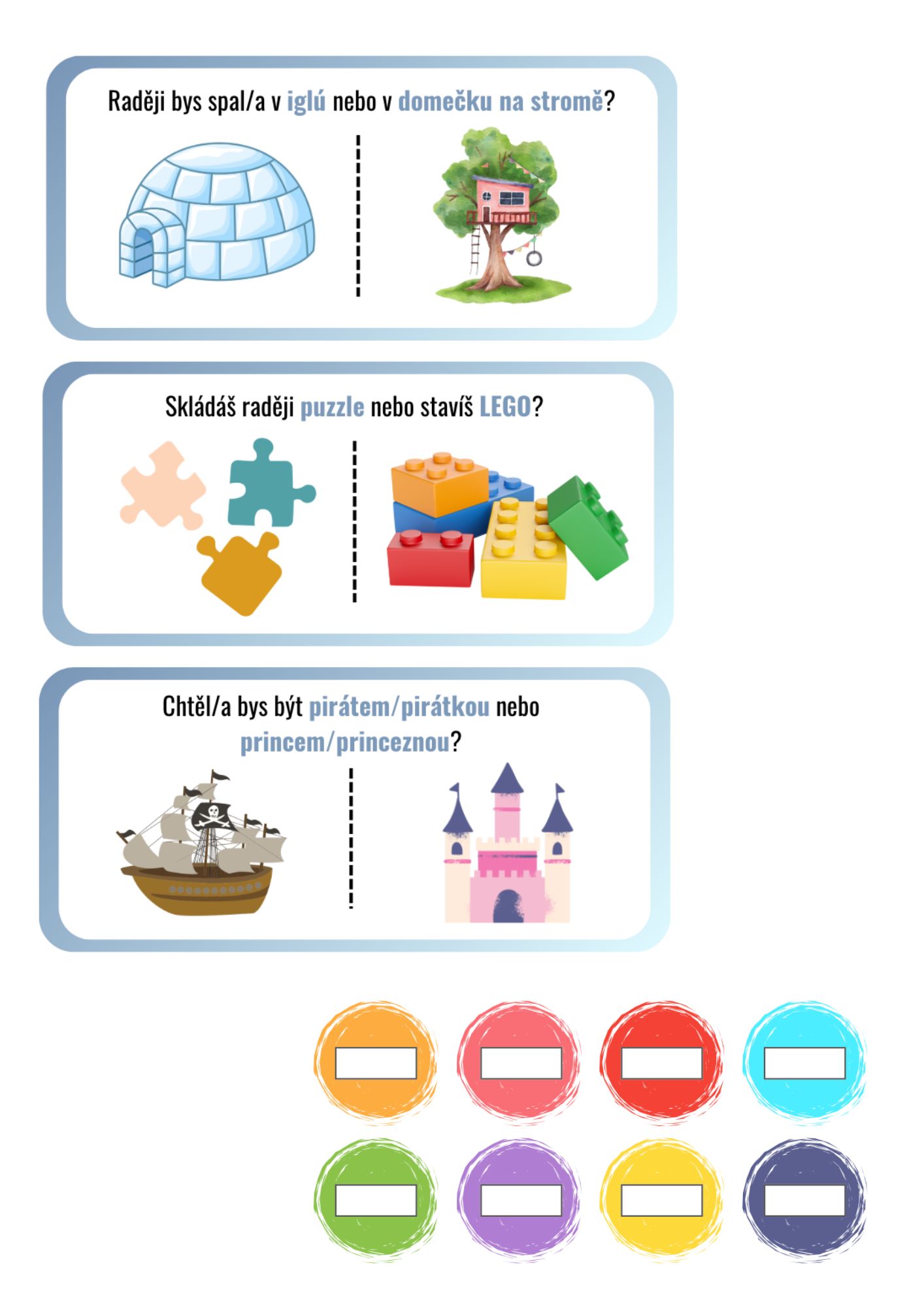 - Materiál obsahuje celkem 42 otázek a 24 koleček (k nadepsání jmen).