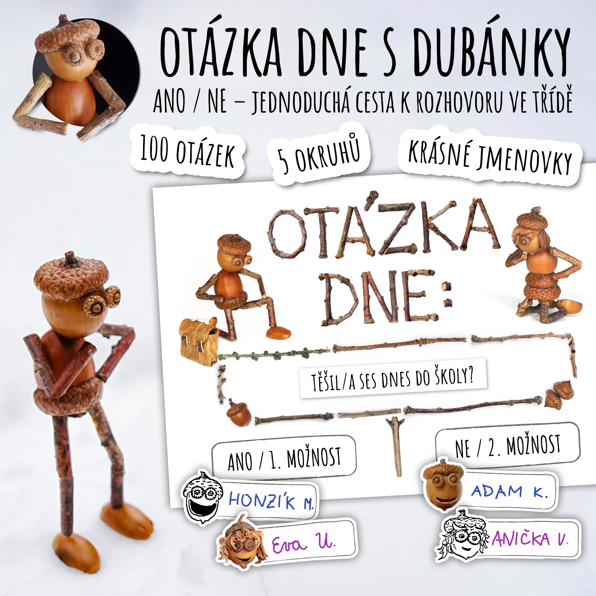 - Plakát s nápisem Otázka dne, dubánkem a duběnkou a místem pro vložení otázky.